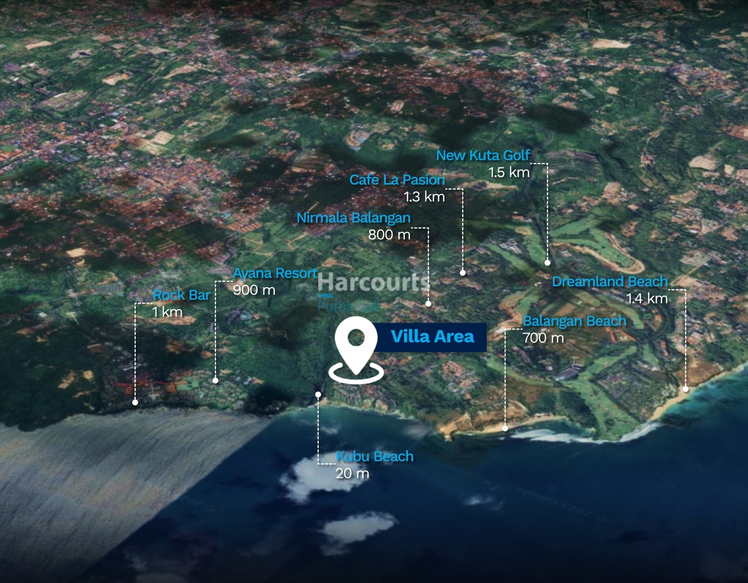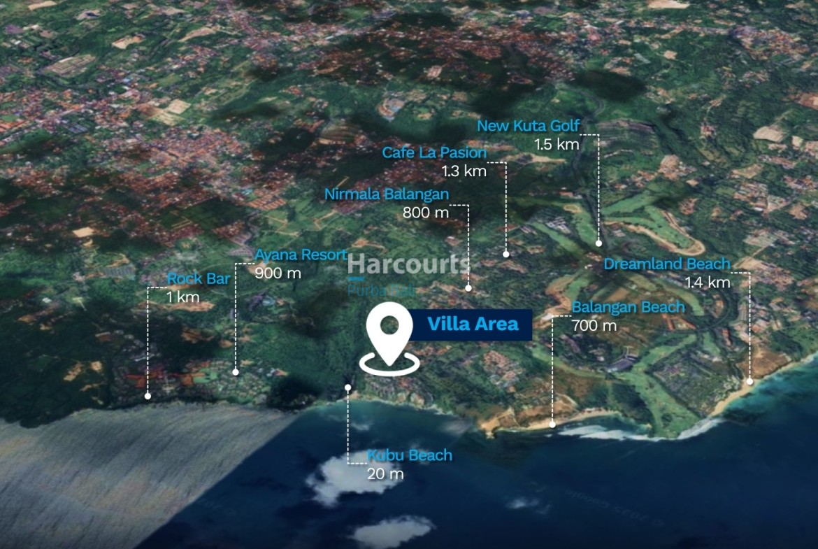 Nearby: Kubu Beach 20 m, Balangan Beach 700 m, Nirmala Balangan 800 m, Ayana Resort 900 m, Rock Bar 1 km, Cafe La Pasion 1.3 km, Dreamland Beach 1.4 km, New Kuta Golf 1.5 km