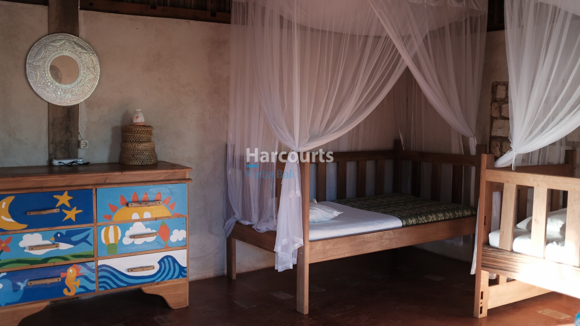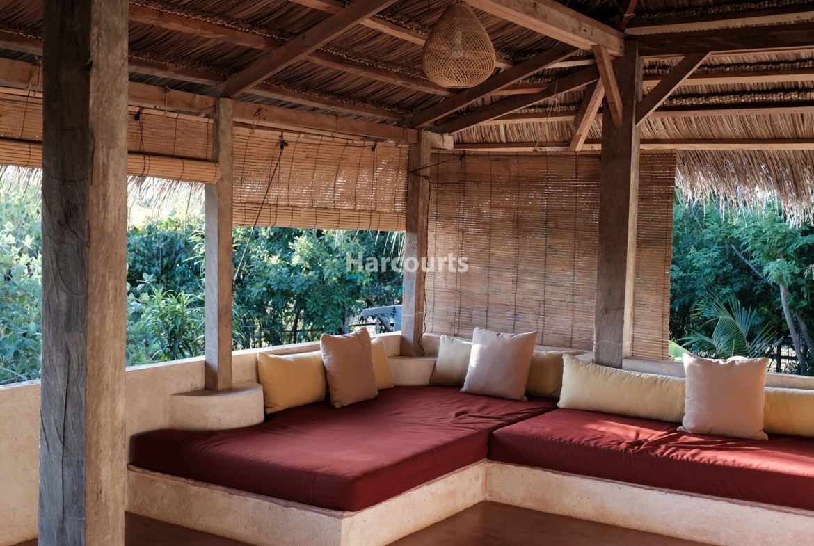 The property features two charming villas thoughtfully positioned within the lush surroundings. The main villa includes two bedrooms with air conditioning, spacious interiors, and modern amenities designed for comfort and relaxation. The second villa is a one-bedroom residence, with an existing license in place to add an additional bungalow, providing excellent potential for expansion and increased returns.