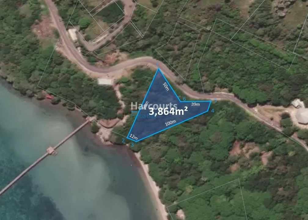 The land stretches elegantly from the main road down to the beach, providing direct access to the serene turquoise waters and offering an ideal canvas for a luxury villa estate, boutique resort, or private beachfront residence.