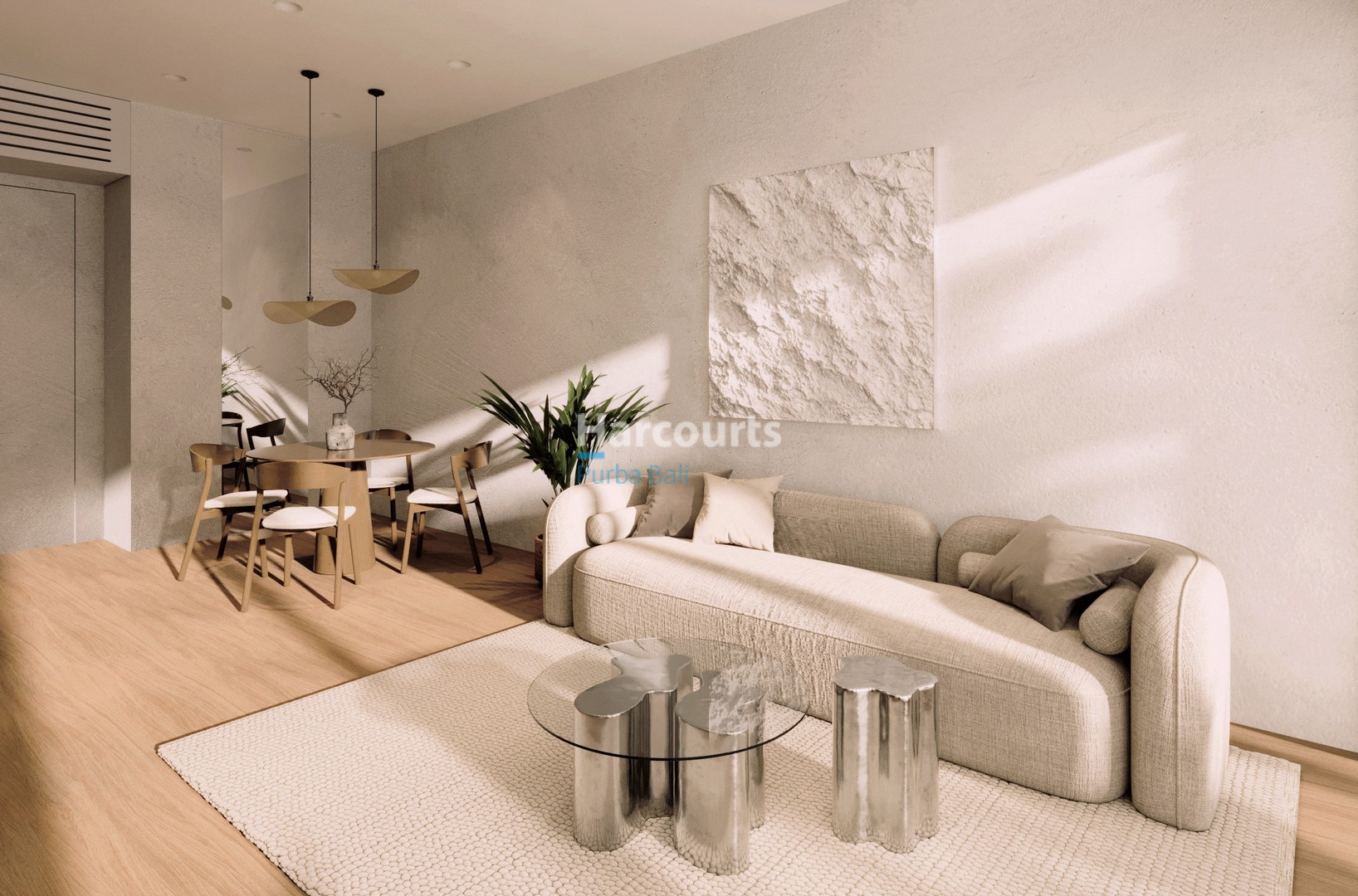 The project offers compelling diversity in accommodation options. Modern tropical apartments range from 47.6m² to 64.3m² 1 bed apartments, starting at IDR 2.755 billion. For those seeking more expansive living, two-bedroom villas begin at IDR 6.5 billion. Each residence features contemporary open-plan kitchen and lounge areas, fully furnished to move-in standards that cater seamlessly to permanent residents, vacation home seekers, and rental investors alike.