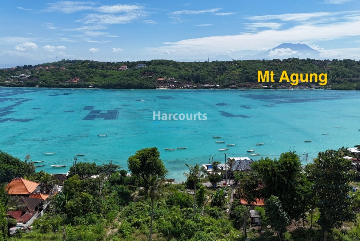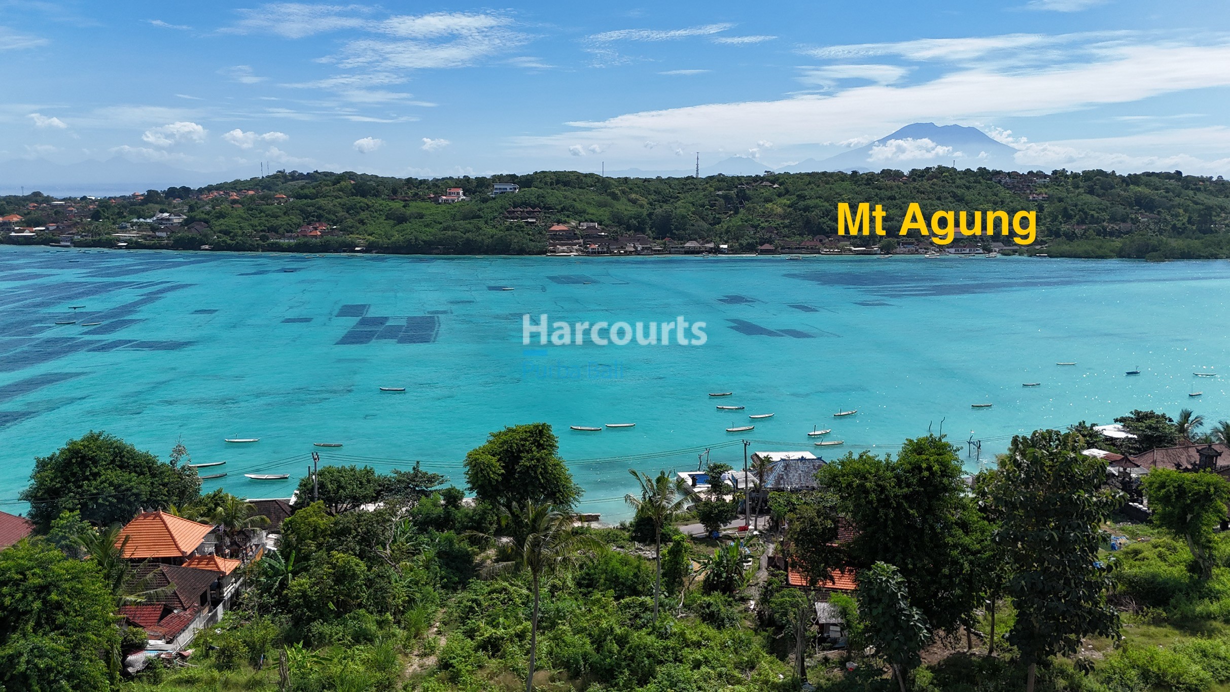 Absolutely perfect land and location for an upmarket private villa. The land is rectangular in shape, nicely elevated being hillside and with a slope conducive to maximising the view. And the views are beautiful with Mt Agung virtually front and centre plus the sunsets, channel and Lembongan to gaze at as well. Under 2 minutes walk to the cool and clear waters of the Lembongan/Ceningan channel below and the Yellow Bridge only a few hundred metres away. Multitude of waterfront restaurants, beach clubs and spa establishments within easy strolling distance to enjoy anytime of the day. The pretty Secret Beach, Blue Lagoon and wave at Mahana Point a few minutes by scooter.