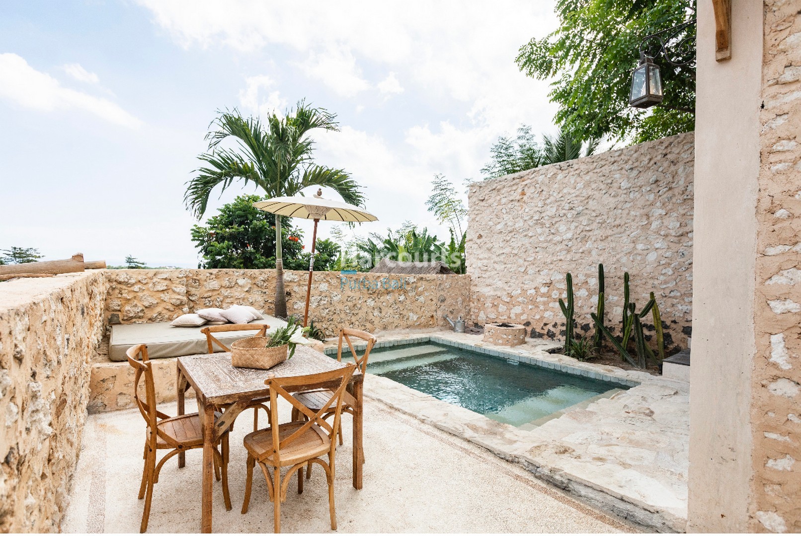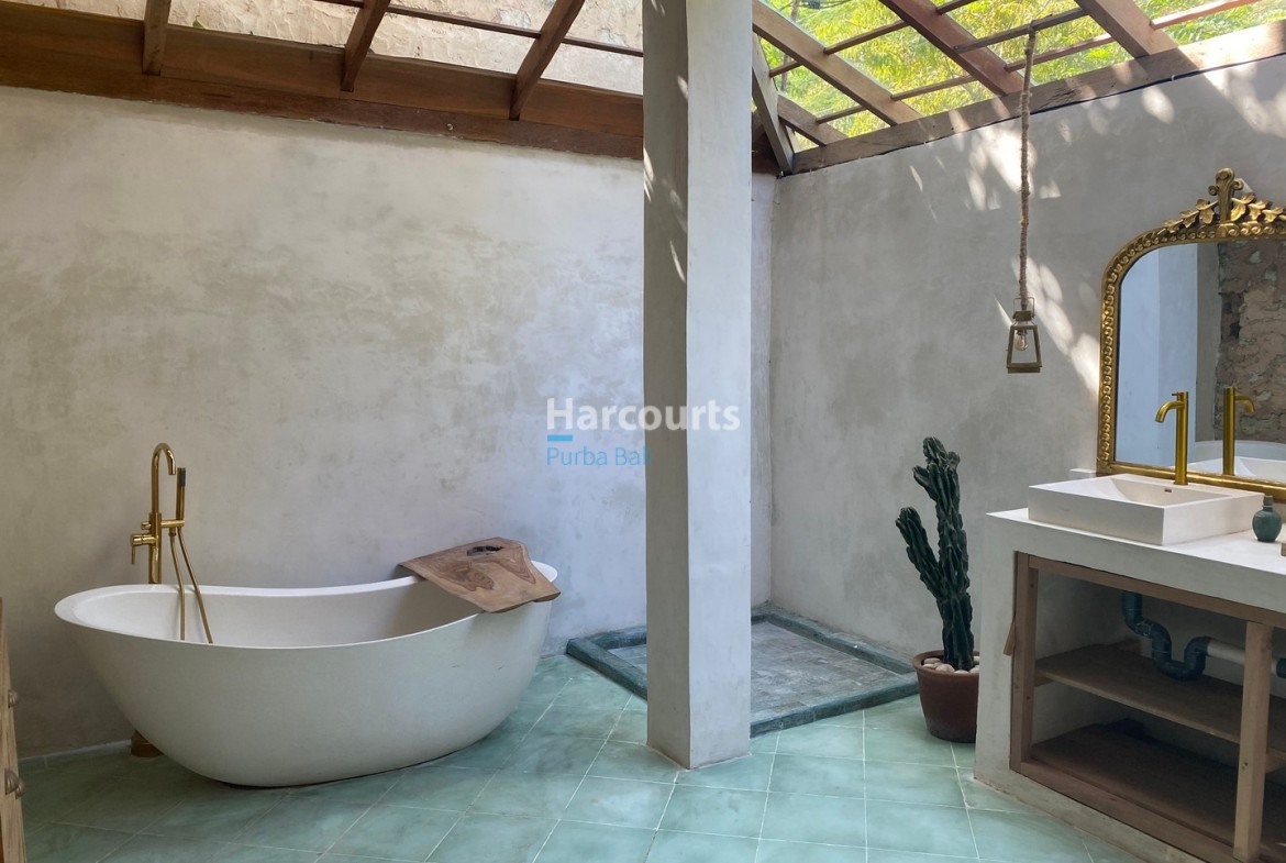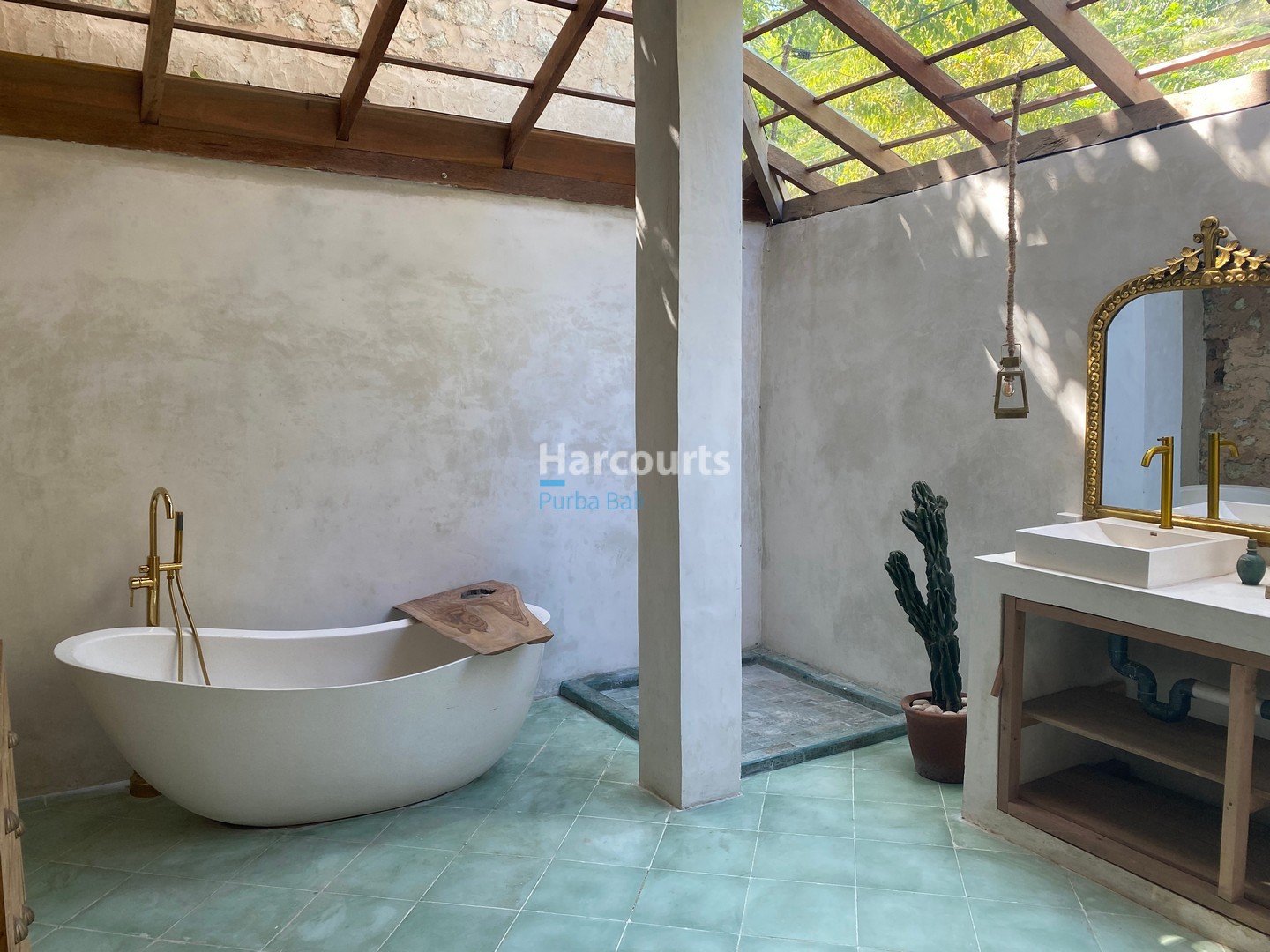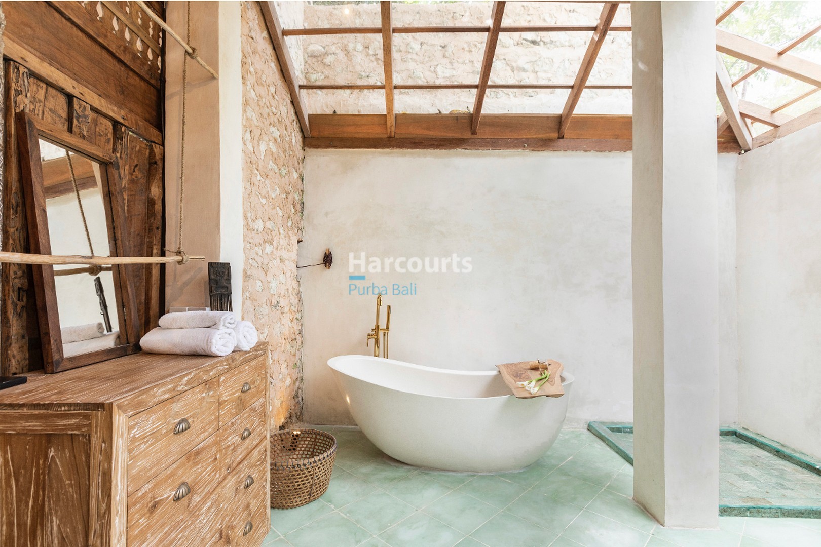 Nestled into the hillside just minutes from Bali’s iconic Padang Padang Beach, this stunning two-bedroom, two-bathroom villa offers a rare opportunity to own a truly unique Mediterranean-inspired hideaway with timeless appeal. Designed with natural materials and a rustic charm that blends seamlessly with the lush surroundings, this 2022-built villa captures the essence of relaxed tropical luxury while offering modern comfort and complete tranquillity.