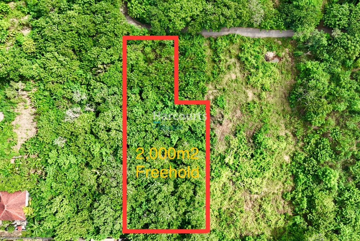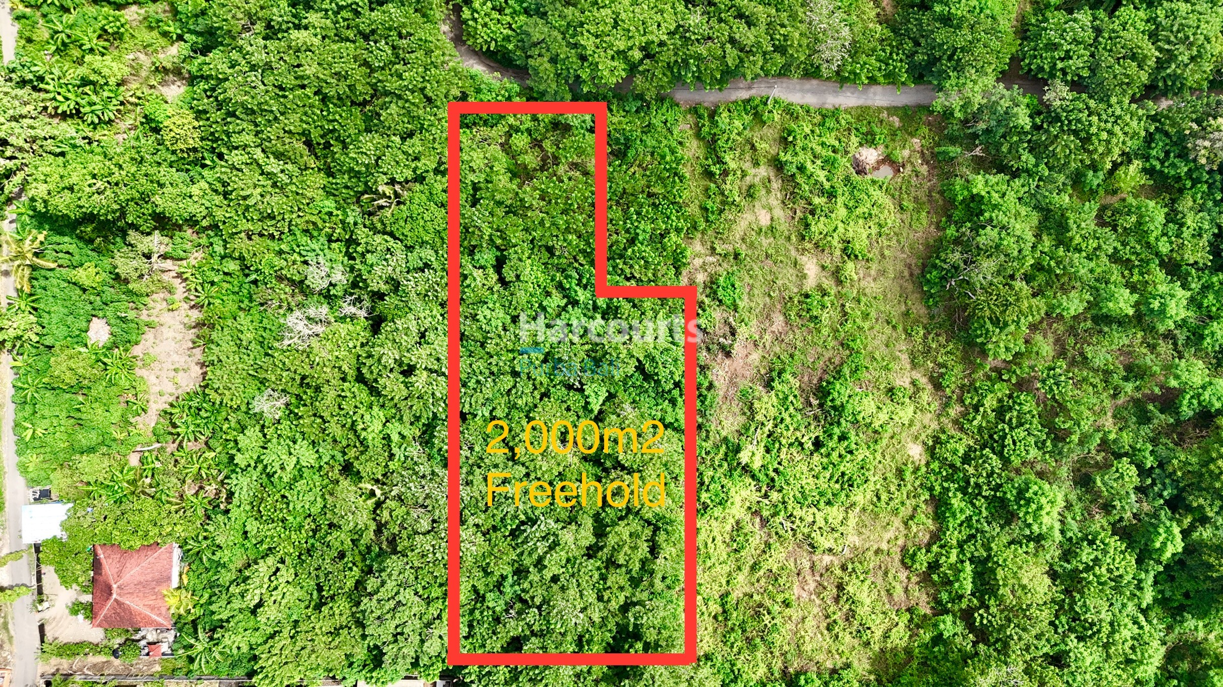 Rectangular in shape, nice and level and with main road frontage, the land is ideal for a private villa with expansive gardens/grounds and at a total size of 2,000m2, also ideal for multi villa development or retreat of some sort.