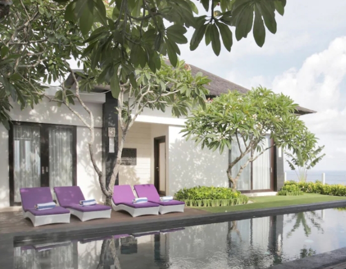 Built into the cliff on the southernmost tip of Bali’s Bukit Peninsula, offering 180 degree panoramic ocean views and close to a powdery white-sand beach.