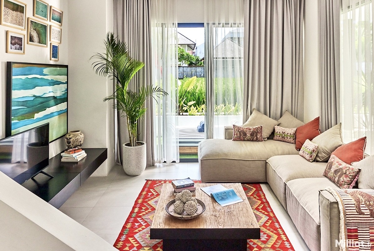 Superb location in the tourist Mecca area of Berawa, Canggu. Just over 1 kilometer to the very popular Berawa Beach and iconic clubs such as Finns and Atlas. Montessori School 500m, Body Factory Fitness 700m, Finns Recreation Club 800m, Liga Tennis Centre 1.2 km….And surrounding the villas themselves a myriad of quality bars, restaurants, branded boutiques of all descriptions, dayspa’s etc etc..