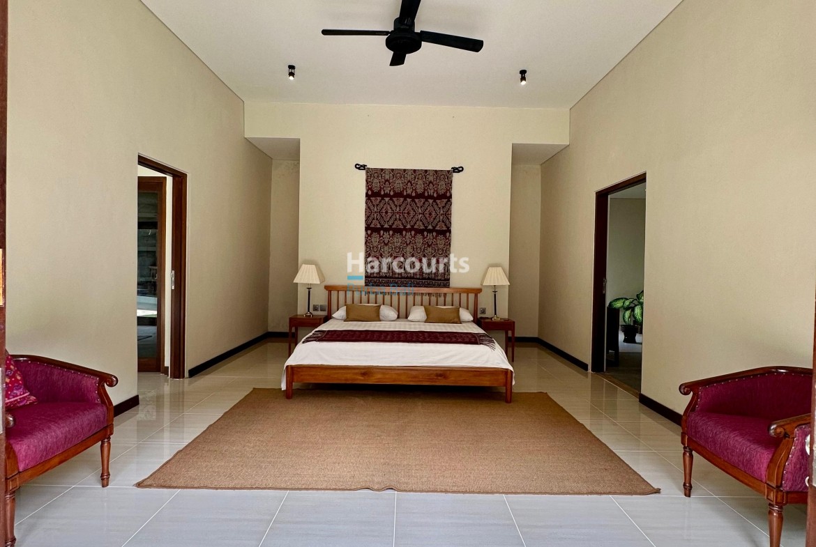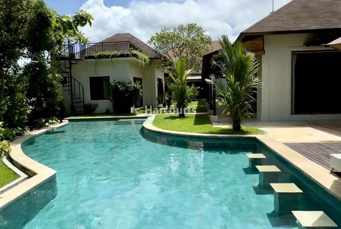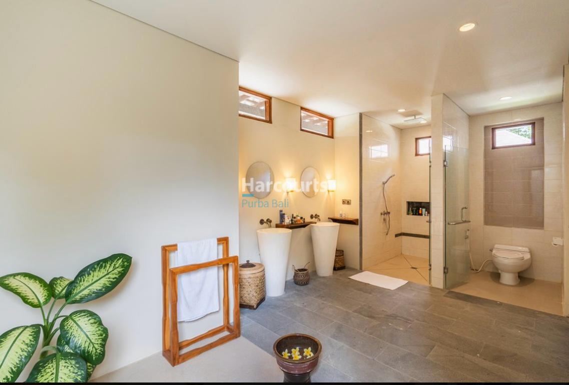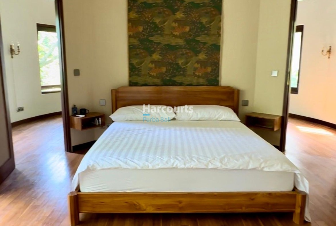 With a blend of western comforts and Indonesian designs, the fully furnished villa is set on a generous 1240 sqm of land and consists of 5 separate bungalows with a total of 5 ensuite bedrooms covering 497 sqm of living space. The main house is where you will find the open plan living/dining area and fully equipped kitchen that opens up to the resort style swimming pool that has its own changing room and showers. Other features of this east facing property include a large landscape garden, bbq area, 2 staff quarters, storage room and parking for 4 cars. The villa also has its own genset.
