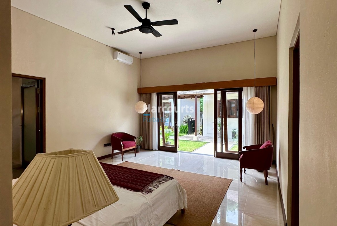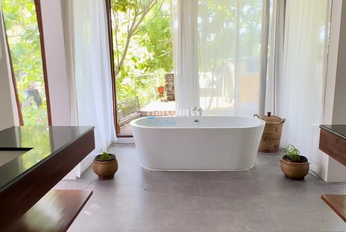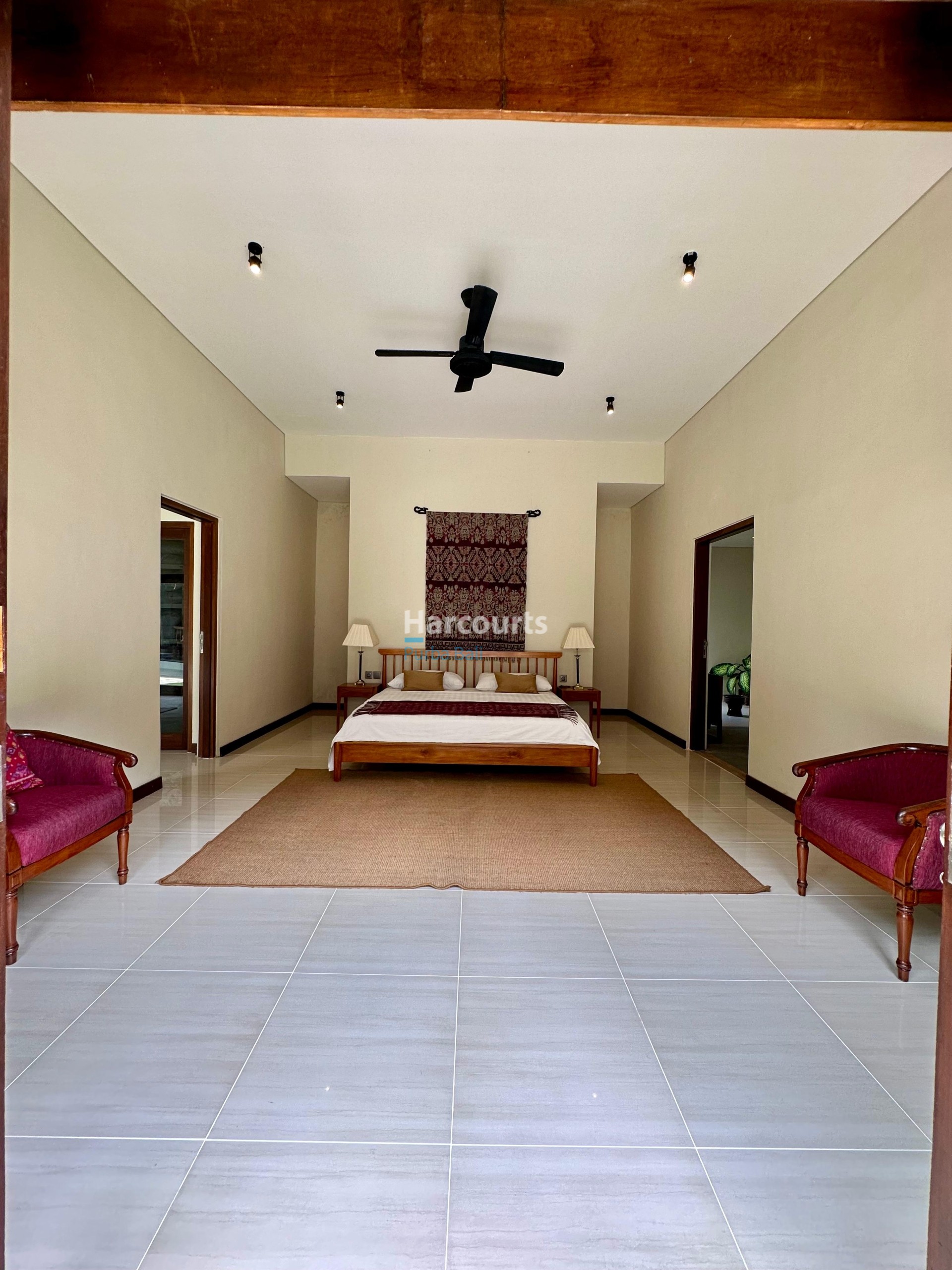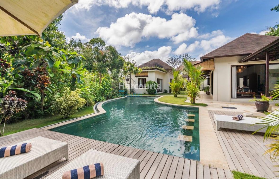 With a blend of western comforts and Indonesian designs, the fully furnished villa is set on a generous 1240 sqm of land and consists of 5 separate bungalows with a total of 5 ensuite bedrooms covering 497 sqm of living space. The main house is where you will find the open plan living/dining area and fully equipped kitchen that opens up to the resort style swimming pool that has its own changing room and showers. Other features of this east facing property include a large landscape garden, bbq area, 2 staff quarters, storage room and parking for 4 cars. The villa also has its own genset.