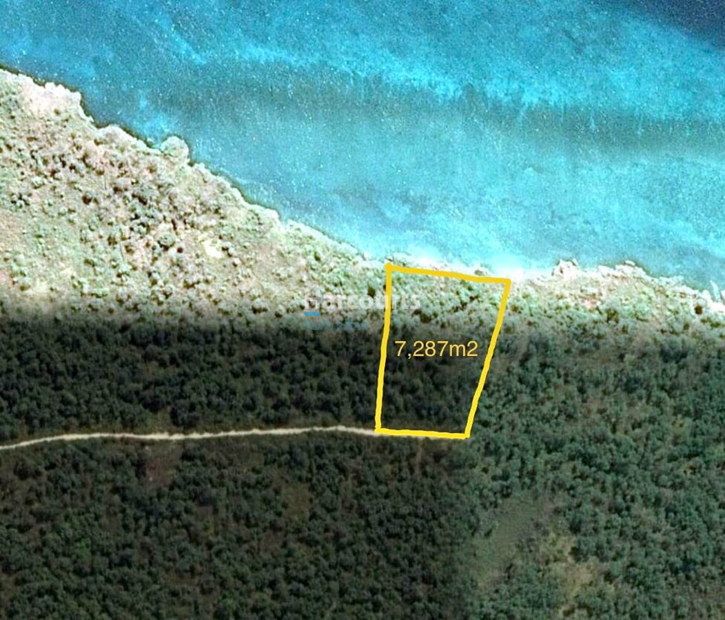 A nice 7,287m2 in size with a little sparlking white sand beach below at low tide which is growing bigger each year.