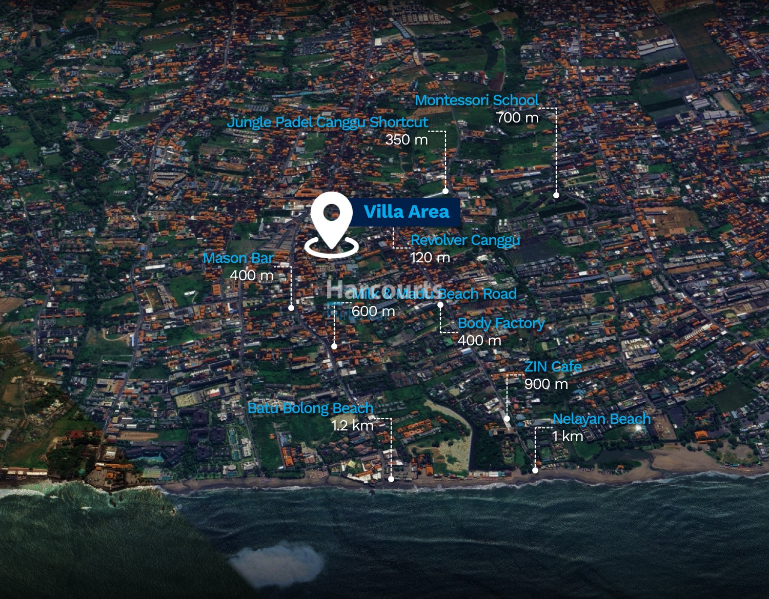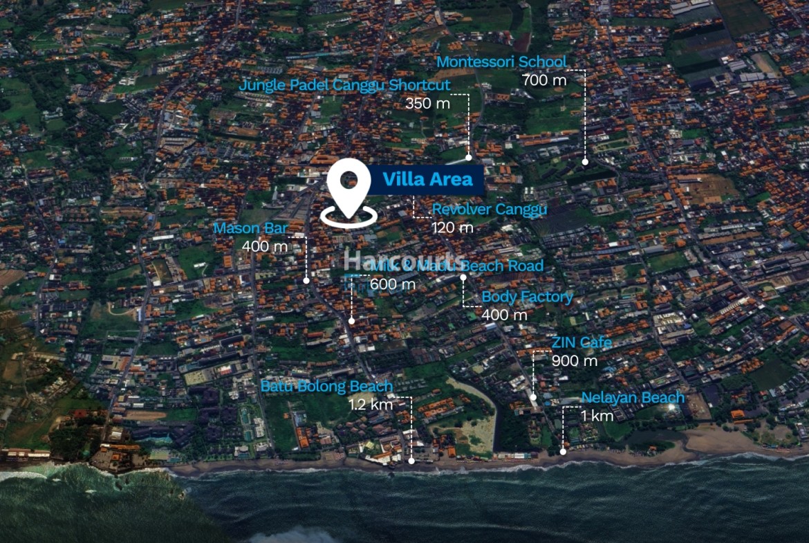 Nearby: Revolver Canggu 120 m, Jungle Padel Canggu Shortcut 350 m, Body Factory 400 m, M Mason Bar 400 m, Milk & Madu Beach Road 600 m, Montessori School 700 m, ZIN Cafe 900 m, Nelayan Beach 1 km, Batu Bolong Beach 1.2 km