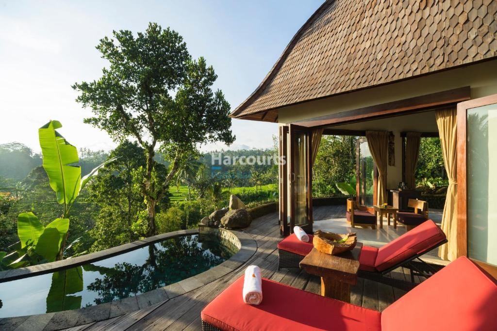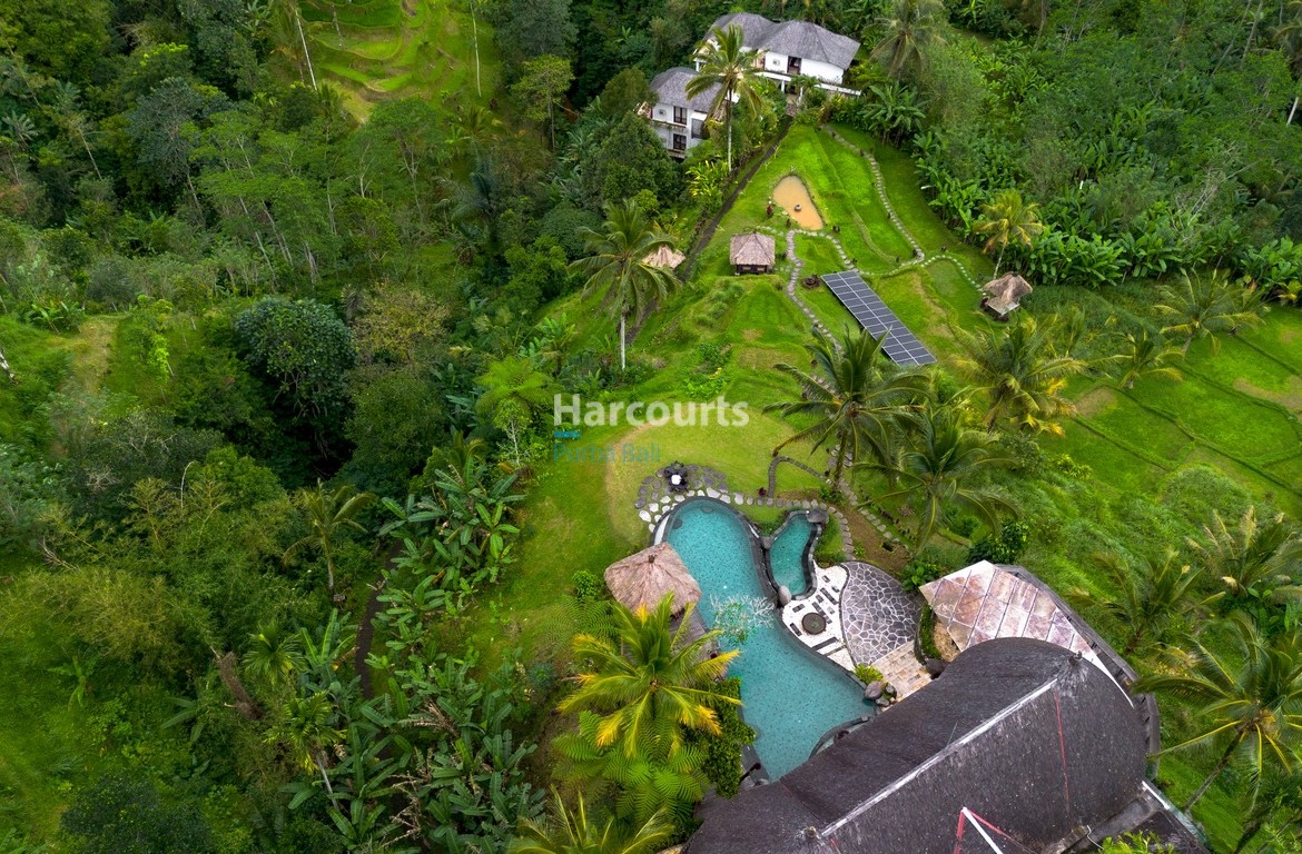 Perched high in the lush, unspoiled hills of Payangan, Ubud, this boutique resort offers a rare chance to acquire a fully operational eco-luxury retreat with breathtaking views of green valleys, tropical forest, distant mountains, and cascading rice terraces. Situated on 14,771 sqm of FREEHOLD land, this one-of-a-kind property is designed for seamless integration with its surroundings, combining sustainable architecture with the comforts of Western-standard living.