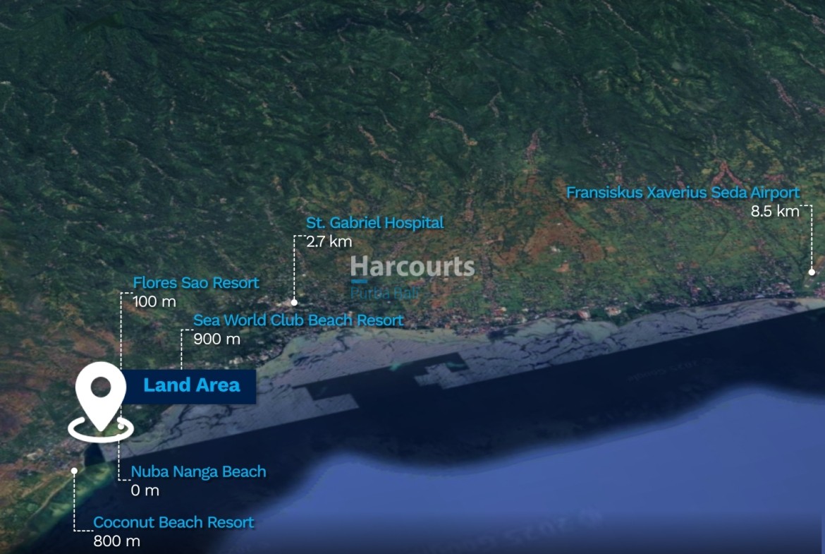 Situated just 20 minutes from Fransiskus Xaverius Seda Airport and only 5 minutes from St. Gabriel Hospital, the location is not only breathtaking but also practical for guests and staff alike. With direct beach access and uninterrupted views of the Flores Sea, this plot stands out as one of the last sizable parcels of its kind in Maumere’s emerging resort corridor.