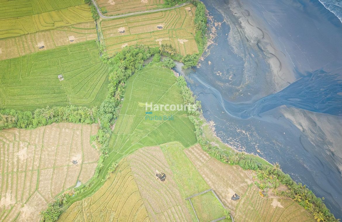 This huge 1.76 hectare plot sits on the beach in Pasut, West coast of Bali, a beautiful and secluded part of the island, offering peace and quiet environment, yet only 40 minutes drive to the famous Tanah Lot temple. With its level aspect and sloping to the beach with 60 meters of beach frontage, dramatic sea views and rice fields surround, this would be a dream property for the development of a major hotel or resort of five star quality or above. All certificates are in place, meaning it’s ready to build and access is 5m width of public road. This is an absolutely magnificent freehold parcel of beachfront land.