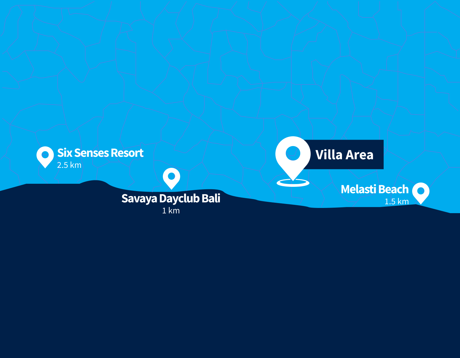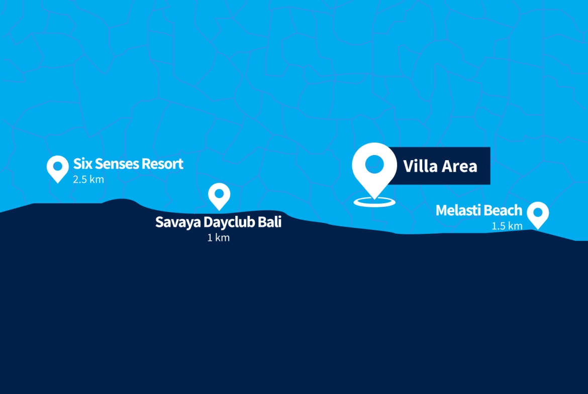 30 minutes to the Bali International Airport. 10 minutes to the Pecatu Golf Course.