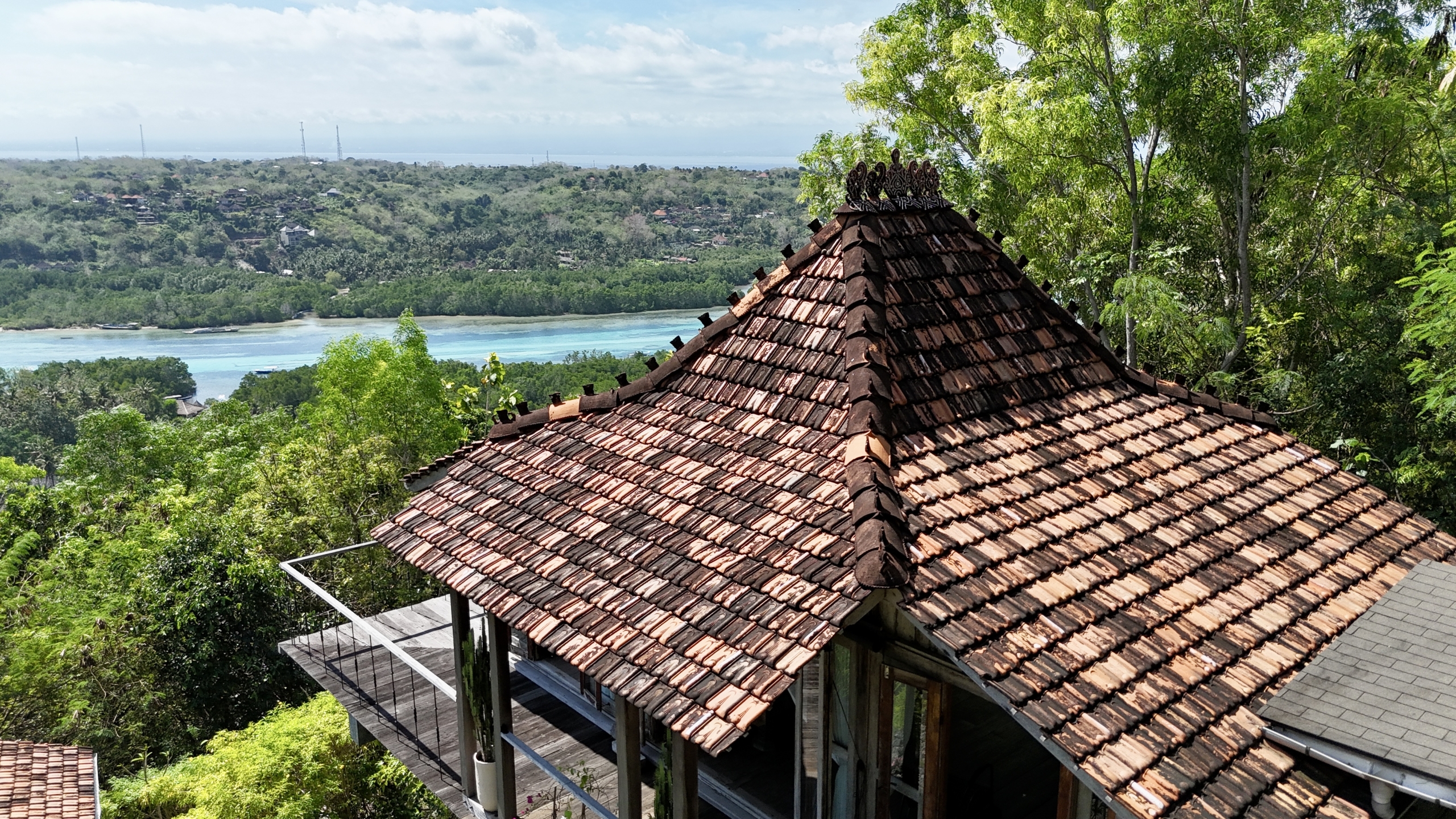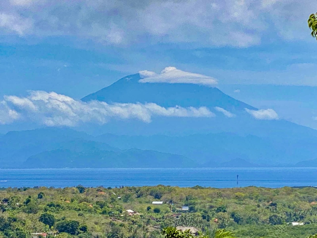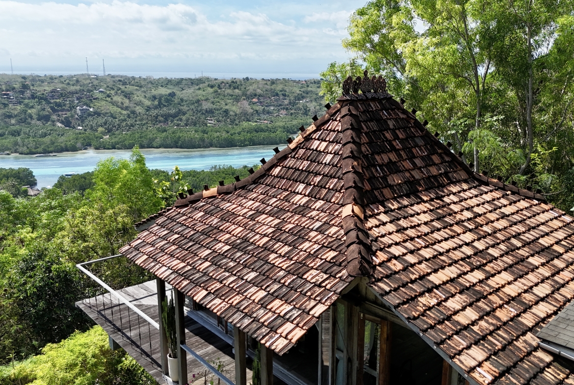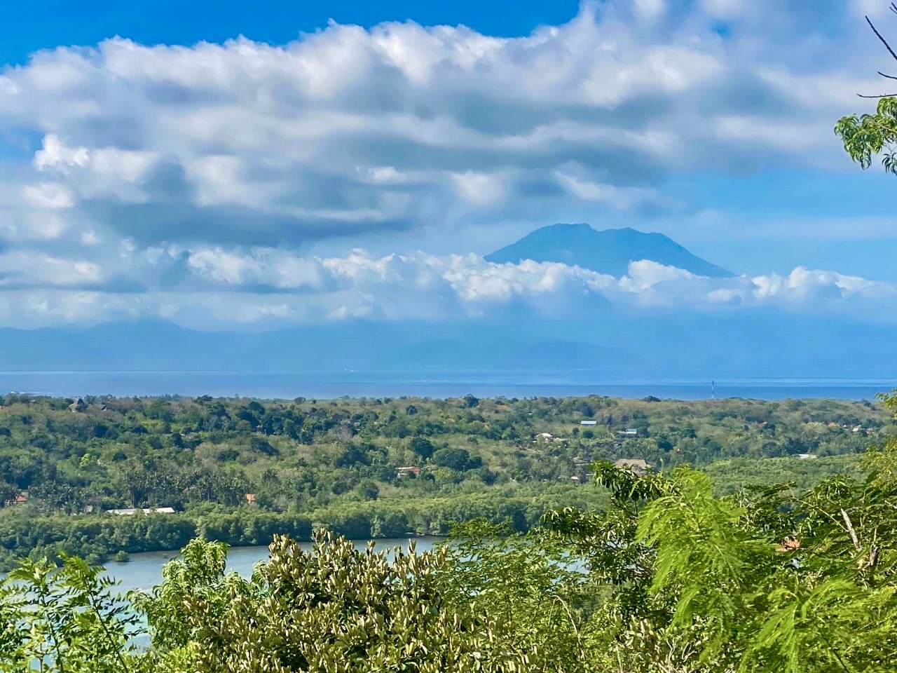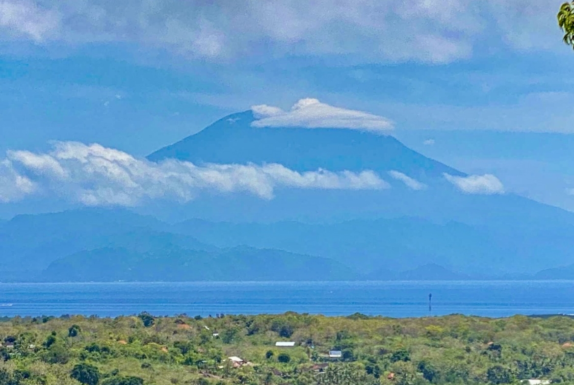 From the moment one arrives at the villa itself the serenity is absolutely palpable with nothing but the sounds of the colourful island birds and the sights of the local butterfly’s in particular the beautiful bright red dragonflies called Capungs. Inspired by timeless traditional Javanese architecture, 2 individual solid teak Gladaks plus a Joglo make up the design of this very special space. At the top of the property left hand side is the fully equipped custom designed kitchen with stand alone bar plus daybed delightful for that early morning (or late) coffee while enjoying the 5 star ⭐️ views of the channel leading to the open ocean, Bali mainland, the mind blowing sunsets and Nusa Lembongan. And to the right, the money shot of the mystical and alluring Mt Agung. Below the kitchen is the outdoor dining area to enjoy anytime of the day. A covered walkway leads from the kitchen to the 2 level main villa of the property forward and to the right of the kitchen. Here you will find 2 lovely bedrooms with a shared bathroom at ground level and on the upper level is the living room, the beating heart of the villa, again with premium views. And closer to the front of the property is the Joglo master bedroom with en-suite, separated nicely from the 2 Gladaks ensuring an ample level of privacy within the property itself. Total build size 233m2.