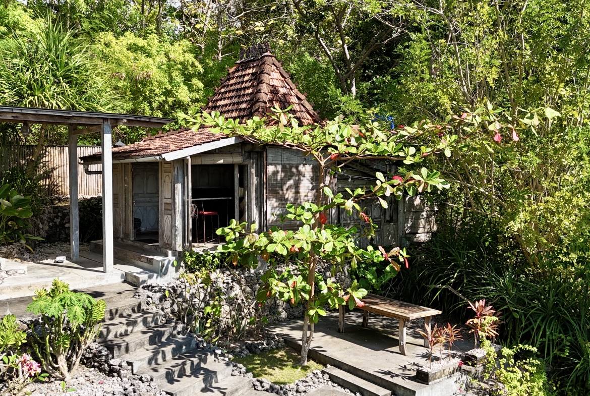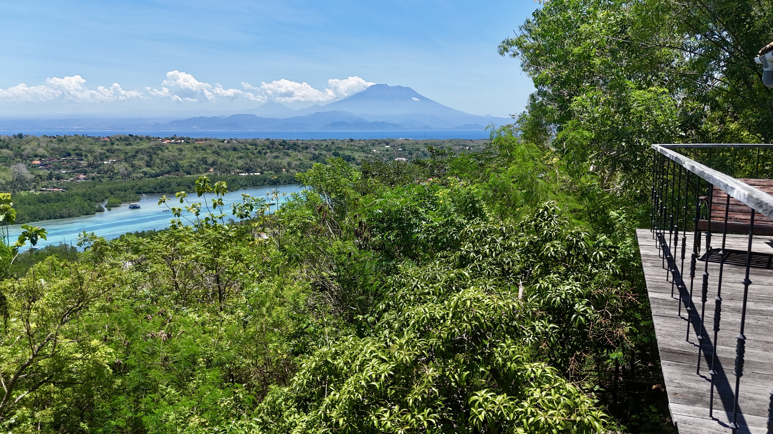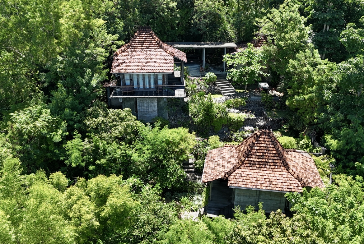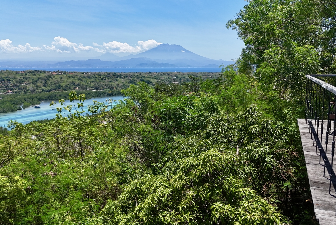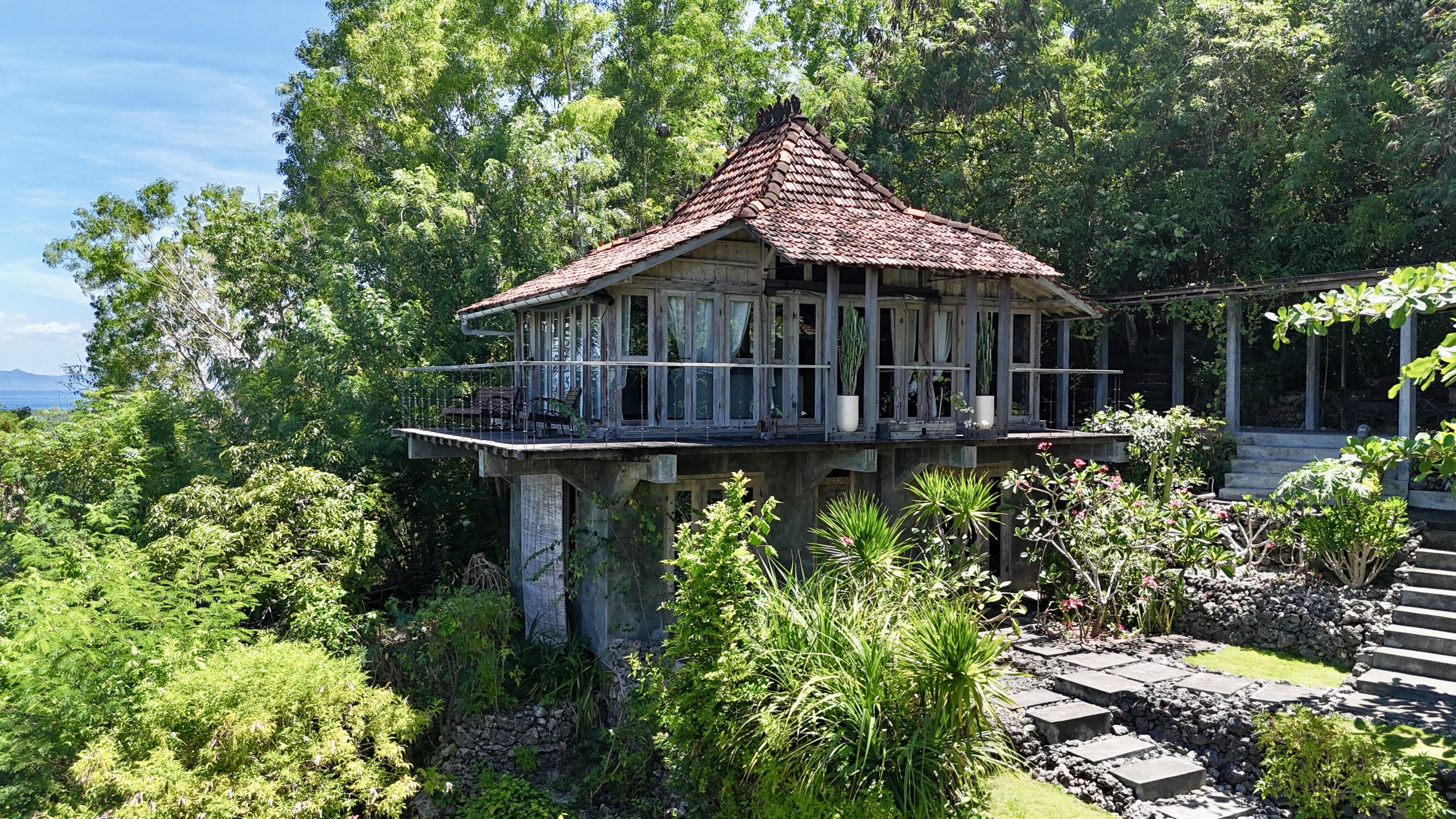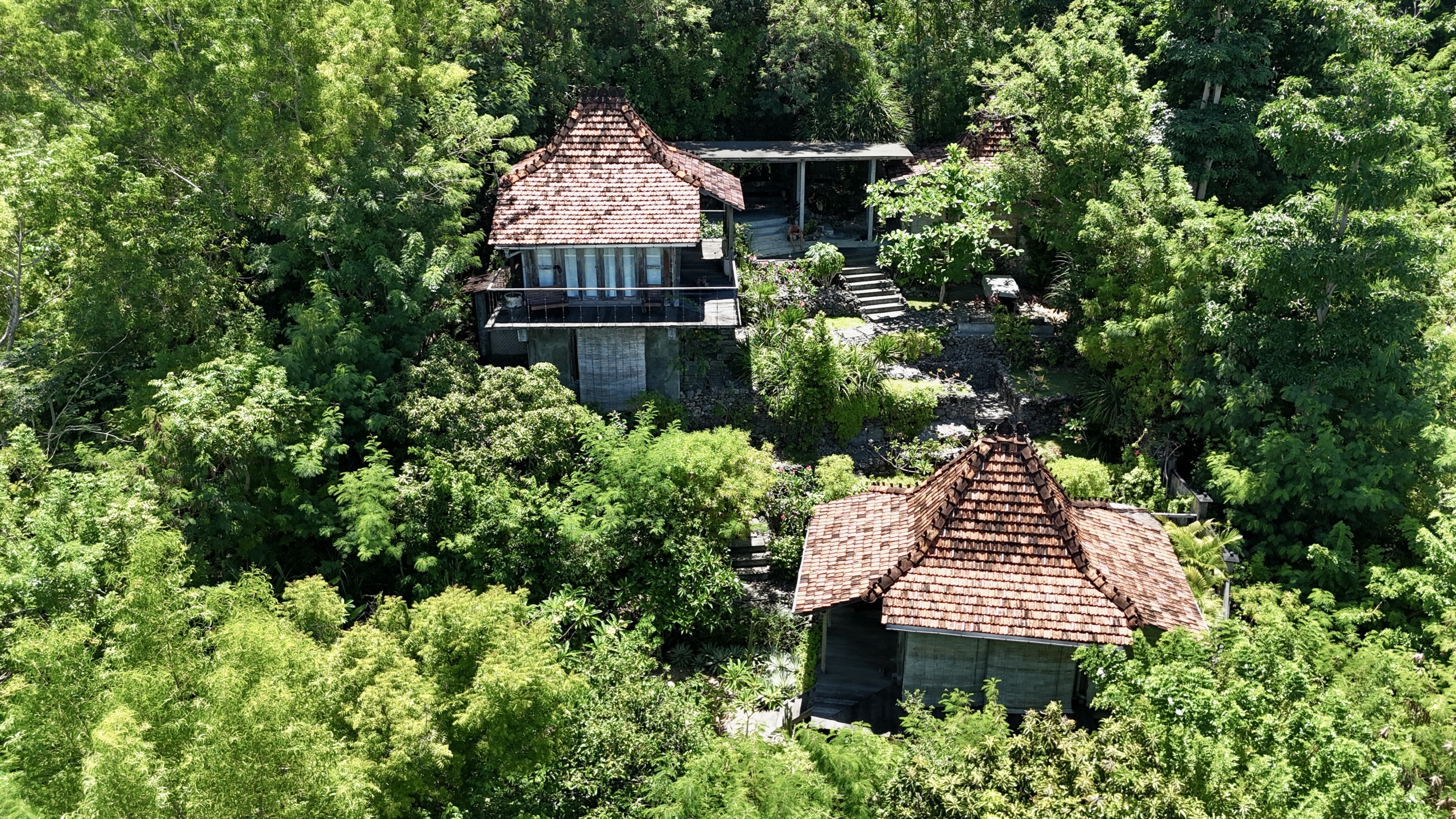 From the moment one arrives at the villa itself the serenity is absolutely palpable with nothing but the sounds of the colourful island birds and the sights of the local butterfly’s in particular the beautiful bright red dragonflies called Capungs. Inspired by timeless traditional Javanese architecture, 2 individual solid teak Gladaks plus a Joglo make up the design of this very special space. At the top of the property left hand side is the fully equipped custom designed kitchen with stand alone bar plus daybed delightful for that early morning (or late) coffee while enjoying the 5 star ⭐️ views of the channel leading to the open ocean, Bali mainland, the mind blowing sunsets and Nusa Lembongan. And to the right, the money shot of the mystical and alluring Mt Agung. Below the kitchen is the outdoor dining area to enjoy anytime of the day. A covered walkway leads from the kitchen to the 2 level main villa of the property forward and to the right of the kitchen. Here you will find 2 lovely bedrooms with a shared bathroom at ground level and on the upper level is the living room, the beating heart of the villa, again with premium views. And closer to the front of the property is the Joglo master bedroom with en-suite, separated nicely from the 2 Gladaks ensuring an ample level of privacy within the property itself. Total build size 233m2.