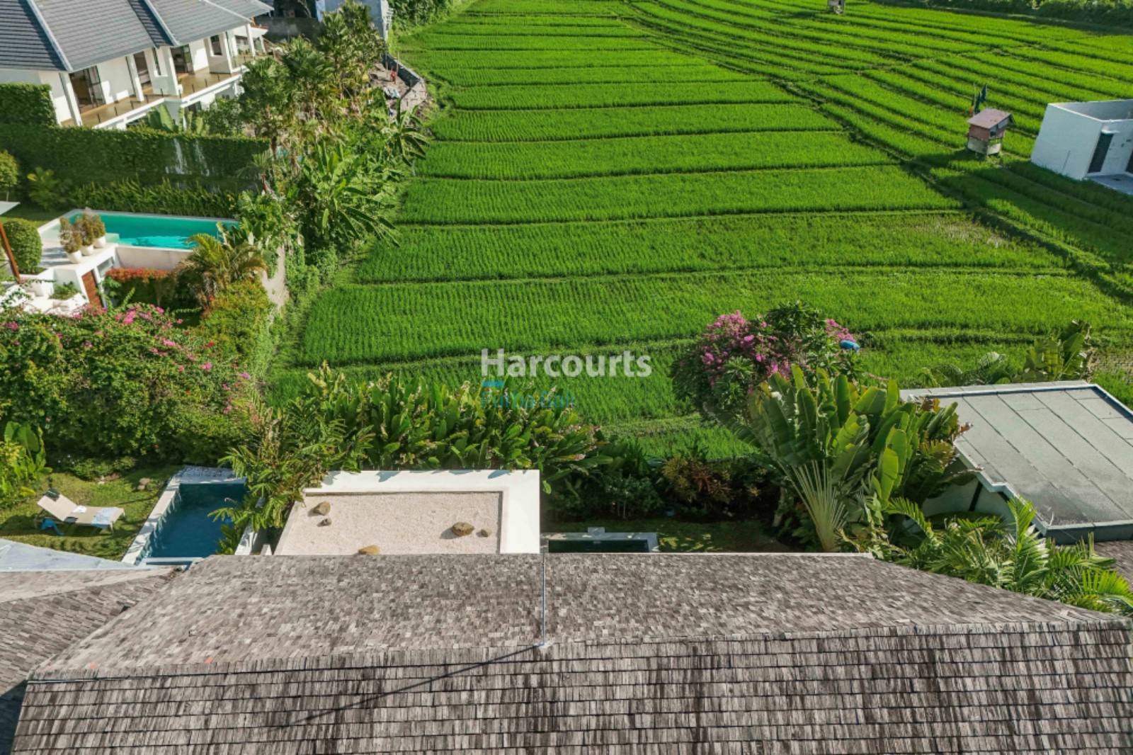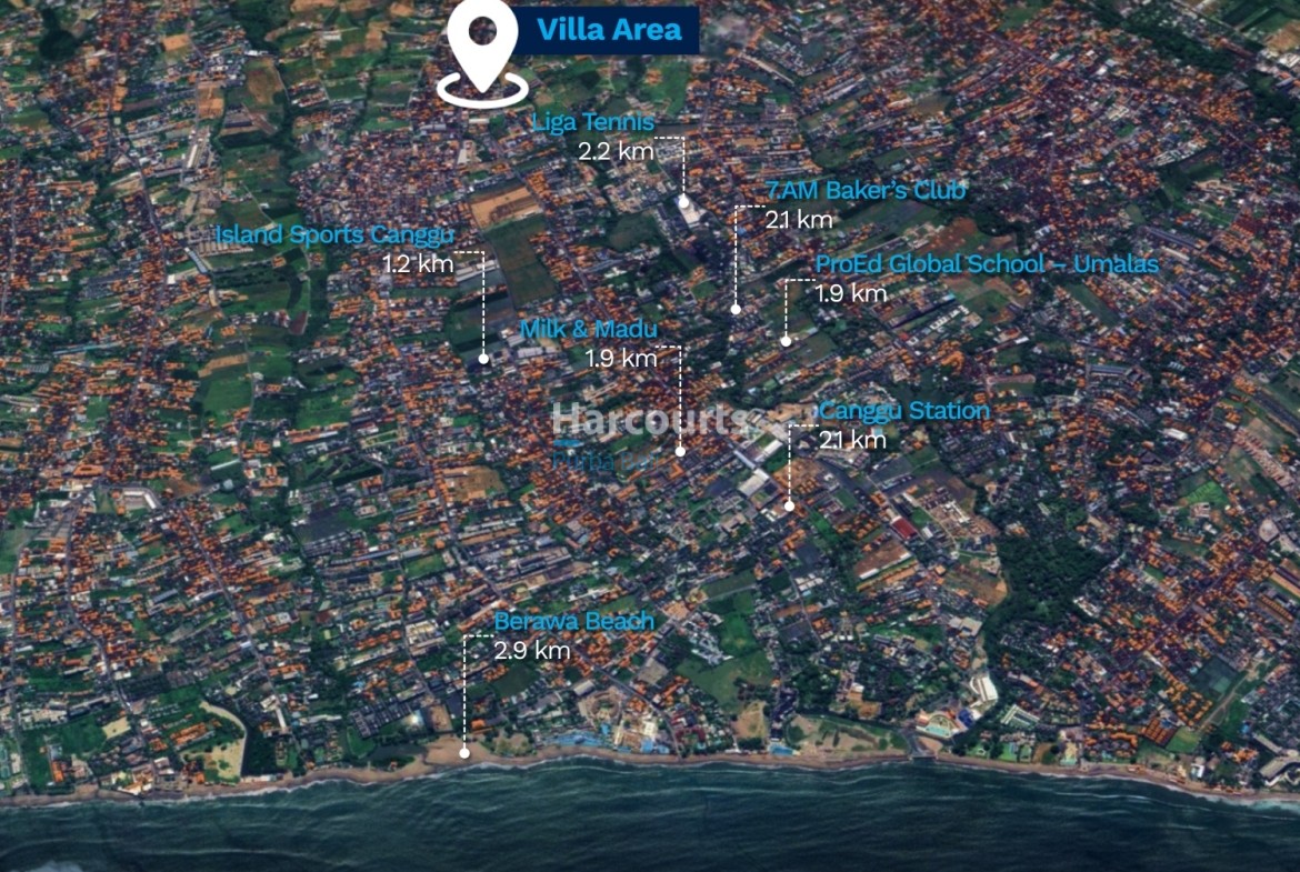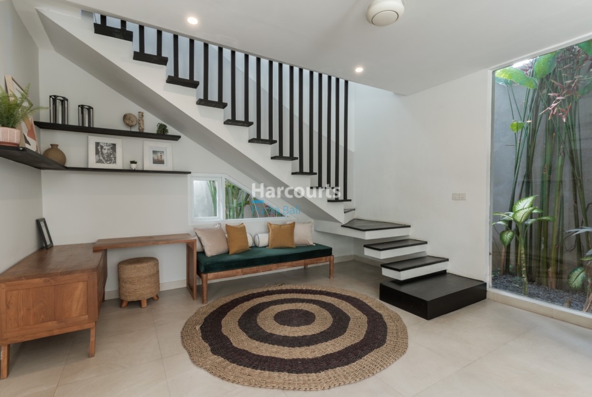 Available for yearly rental at Rp 650,000,000 or monthly Rp. 65.000.000 with internet, cleaning and maintenance included, this home places you within Berawa’s energetic neighbourhood of cafes, international restaurants and boutique shopping while remaining a calm sanctuary after a day by the coast. Contact Harcourts Purba Bali to arrange a private viewing.