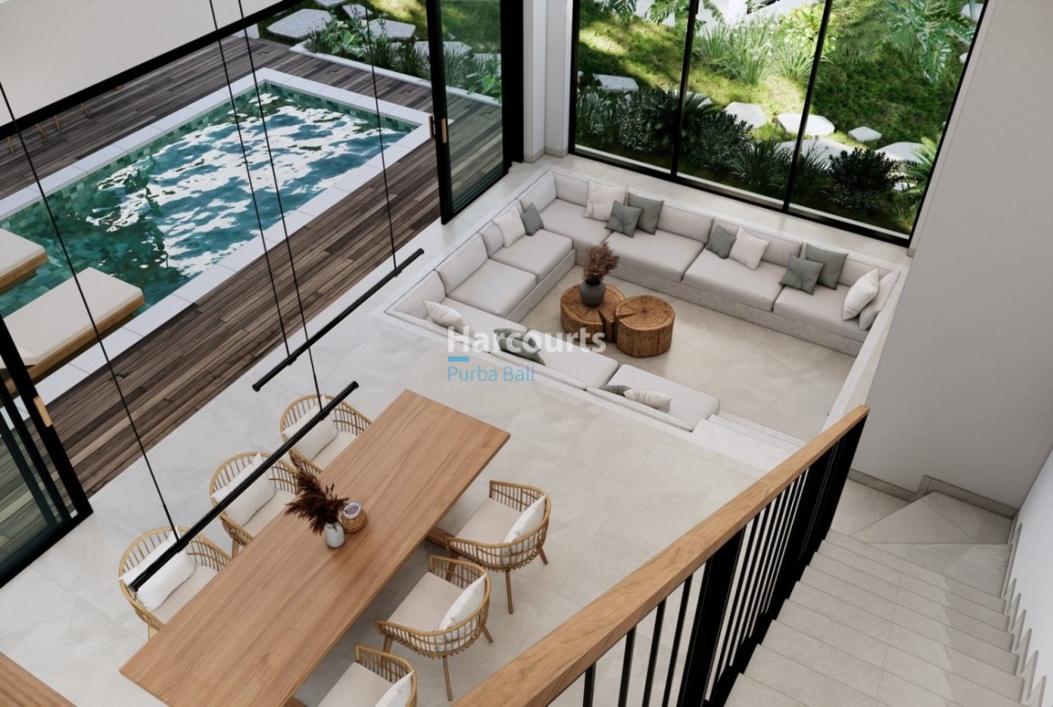 Located in the vibrant heart of Bingin, this off-plan, fully furnished three-bedroom, four-bathroom villa is offered on Leasehold (Hak Sewa) — with 40 years remaining. Scheduled for completion in 2026, the home offers 180 m² of carefully curated living space anchored by a 17.6 m² private courtyard pool and a refined modern-tropical design focused on effortless indoor–outdoor living.