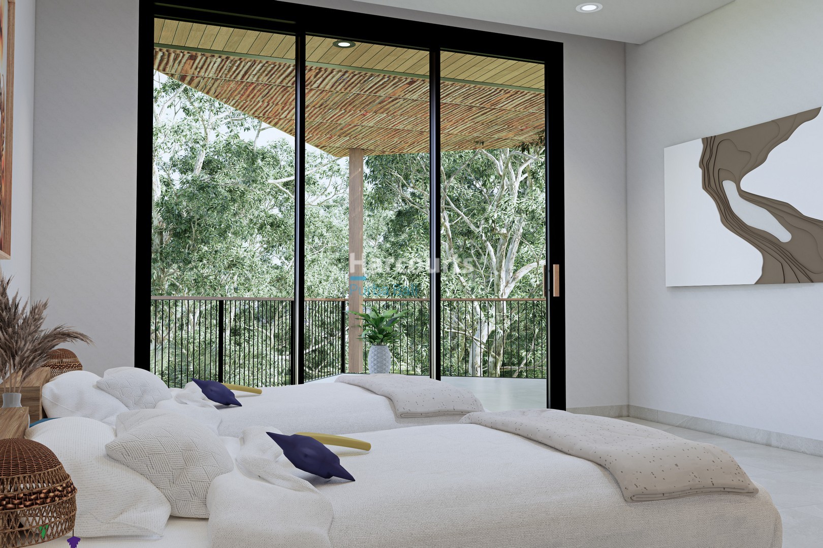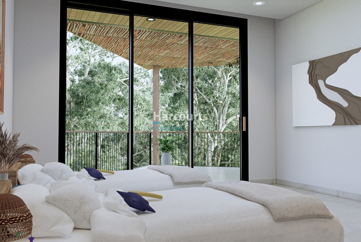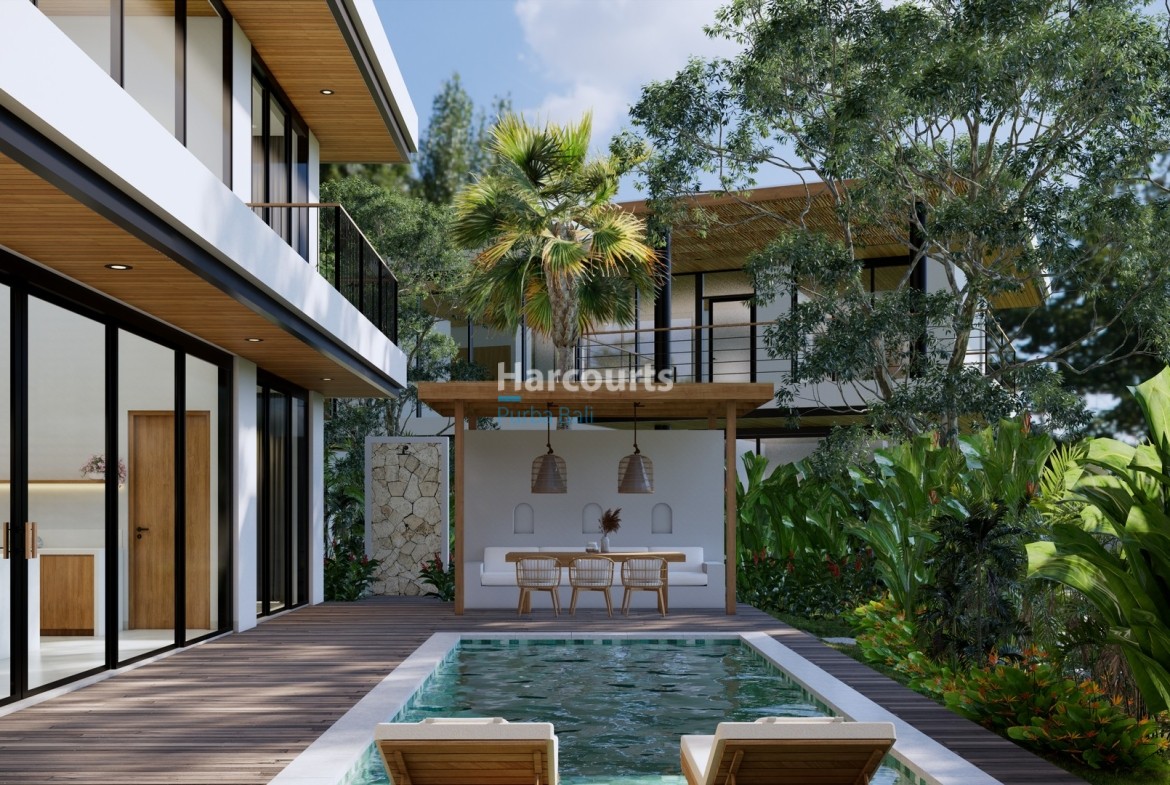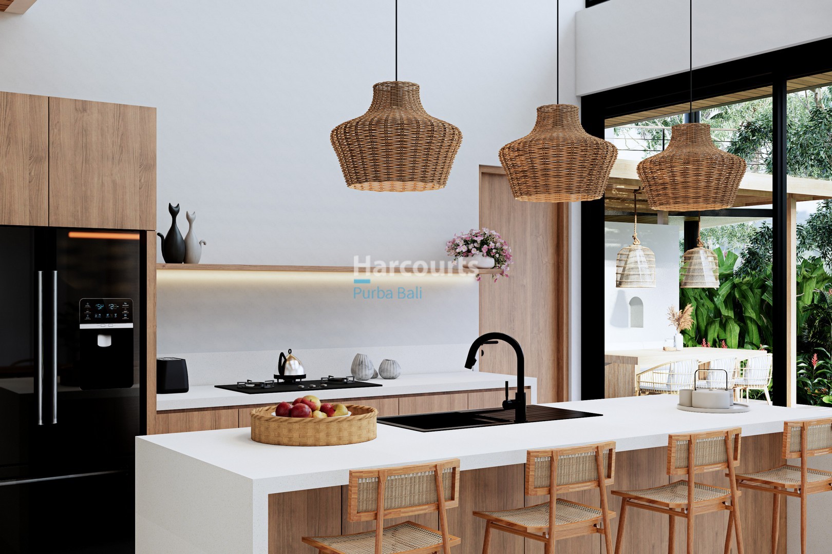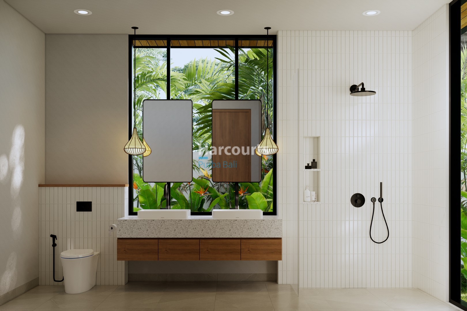 Positioned in sought-after Bingin, this brand-new off‑plan villa is available on a 40-year leasehold (Hak Sewa) tenure and delivers a turnkey, fully furnished residence with completion scheduled for 2026. Designed over two levels with a 215 m² build, the home offers four private bedrooms and five modern bathrooms—an ideal balance of family comfort and high-yield rental potential.