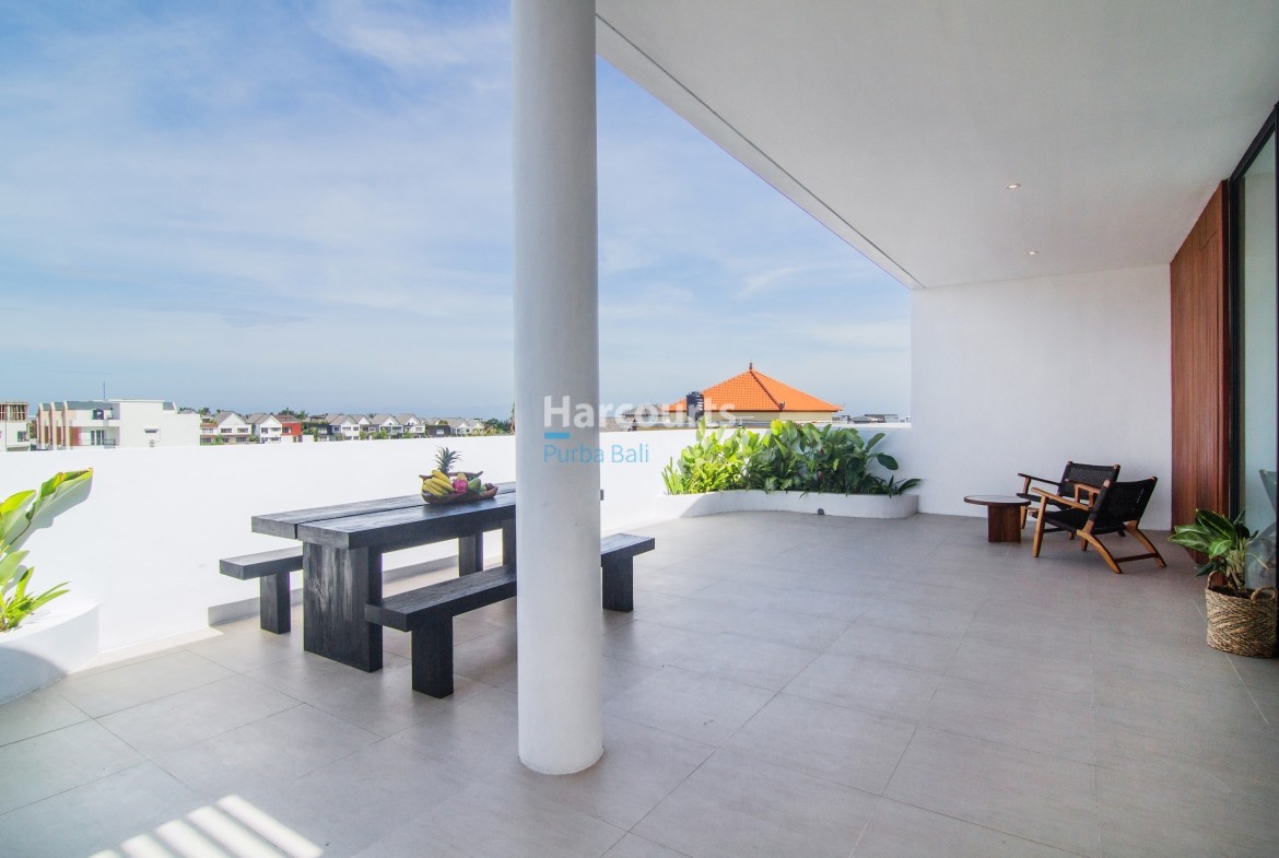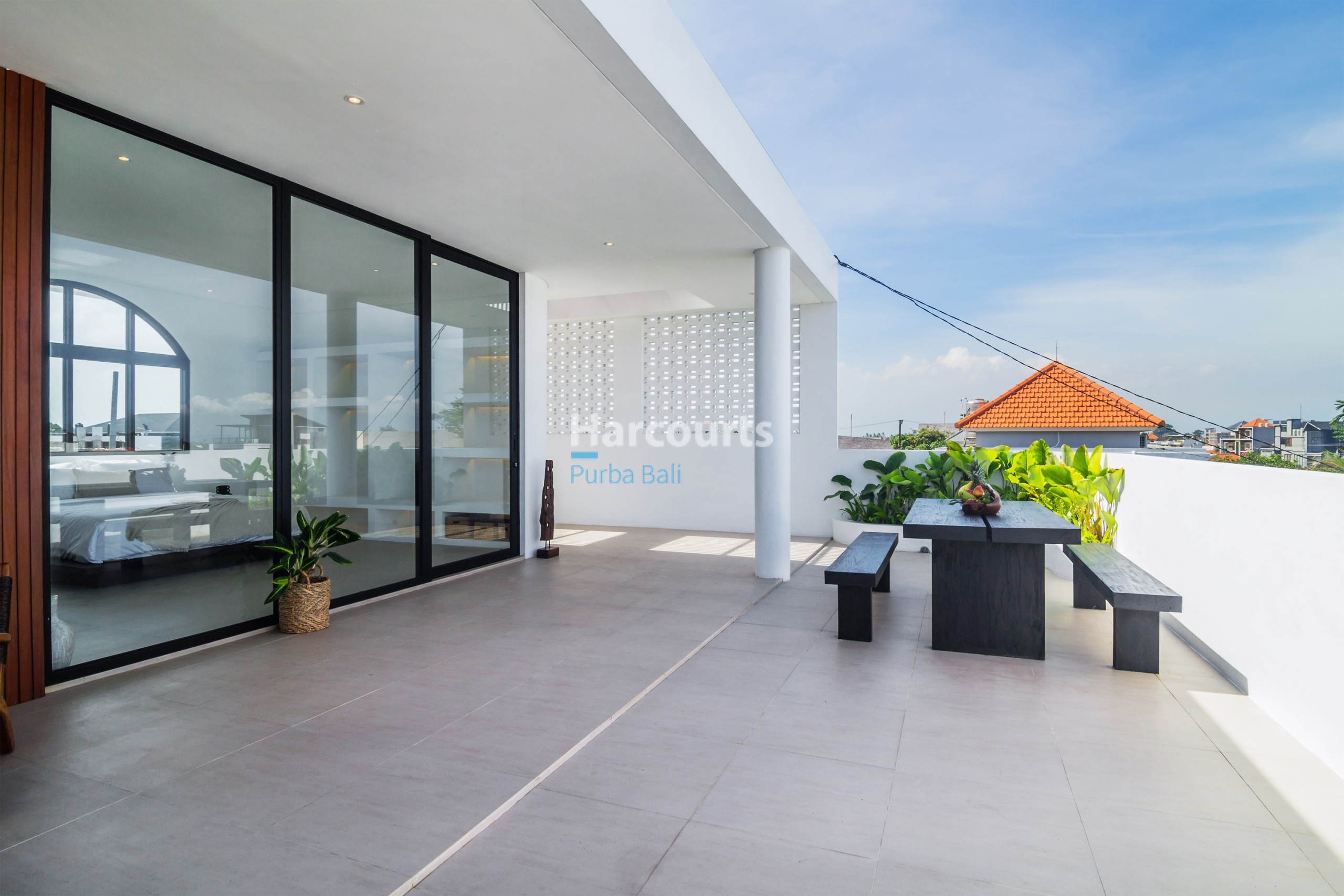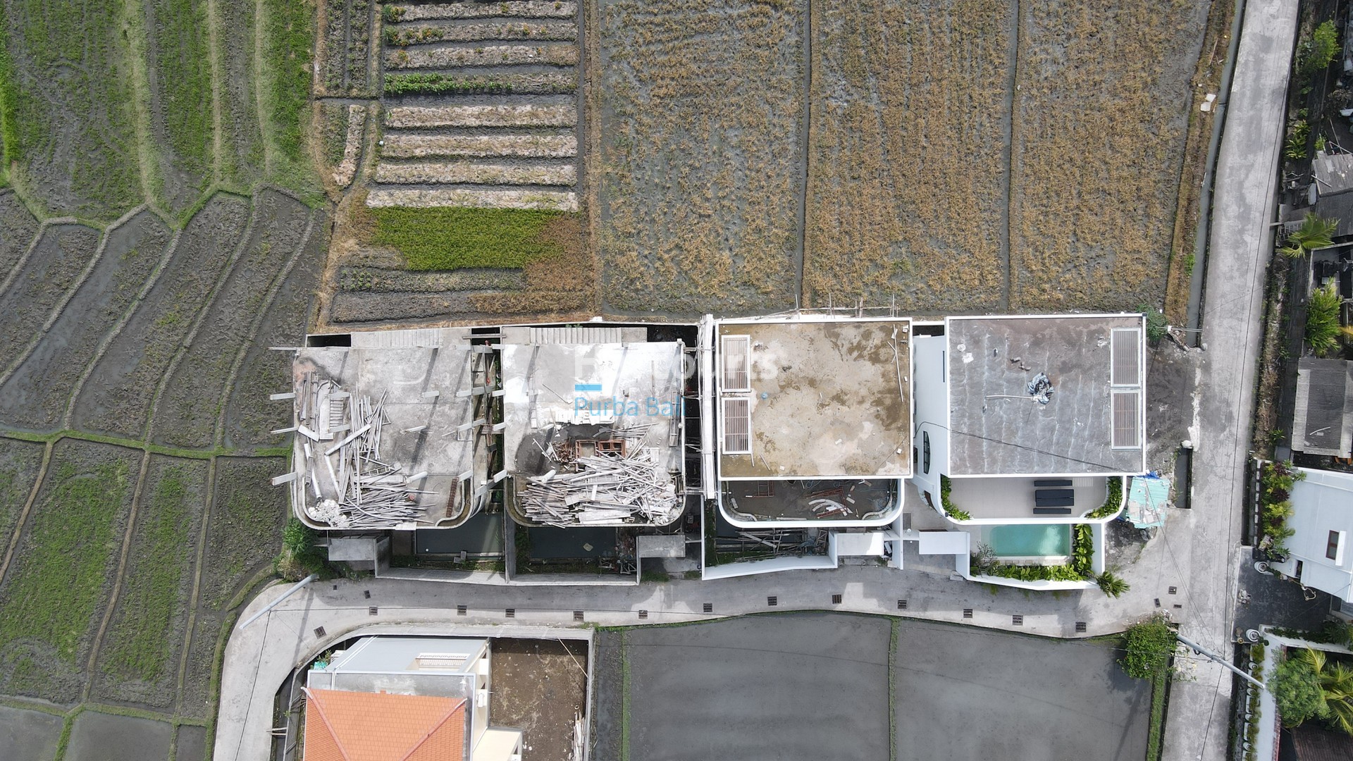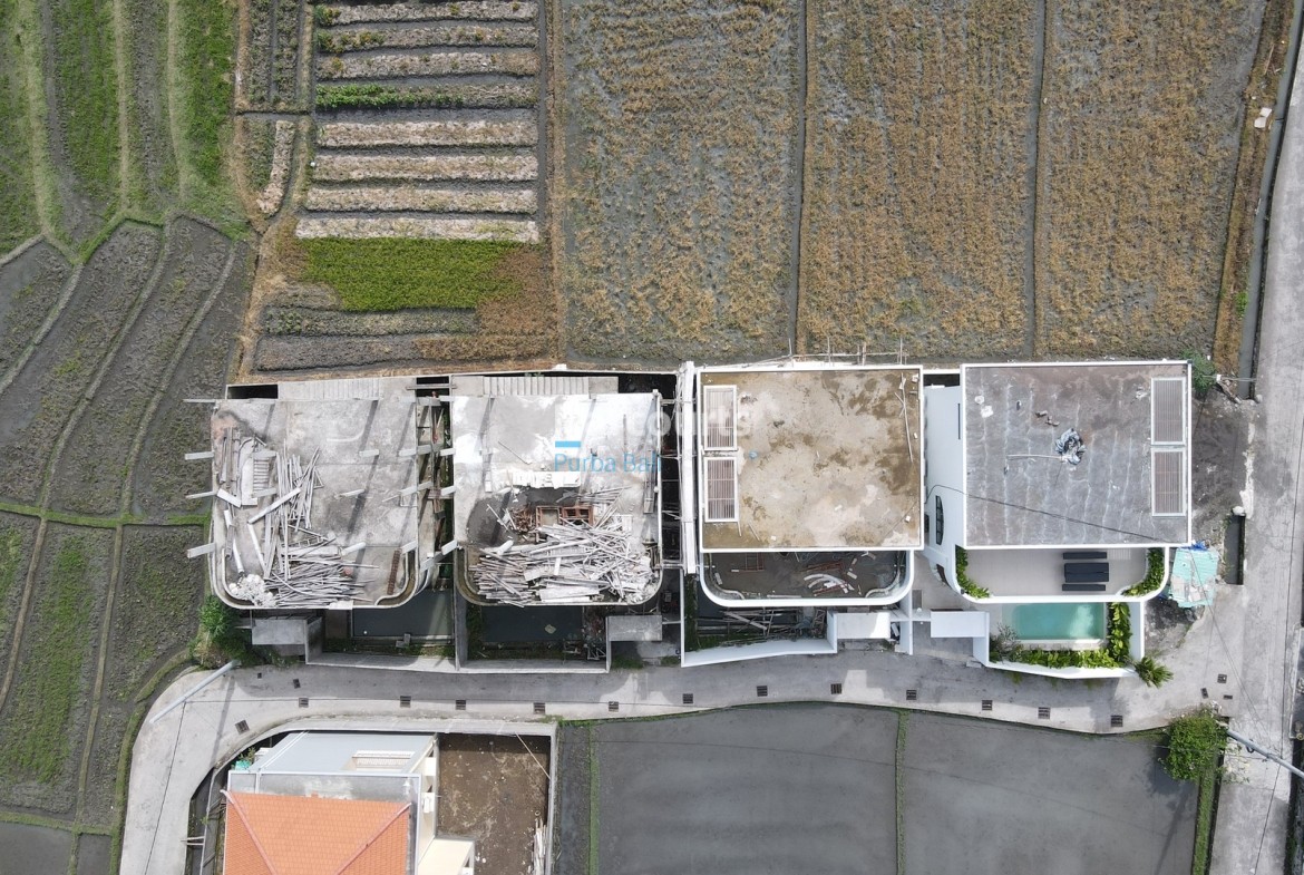 With a building size of 274 sqm across two floors, top floor is a master suite & bedroom – with rooftop area, built on a modest 189 sqm plot, each villa is a masterpiece of modern design, offering two spacious bedrooms, both with ensuite bathrooms, and a sunken lounge room that effortlessly doubles as a guest bed for added convenience. Step onto the rooftop terrace and immerse yourself in panoramic views of the ocean and verdant rice fields, where every sunset becomes a masterpiece.