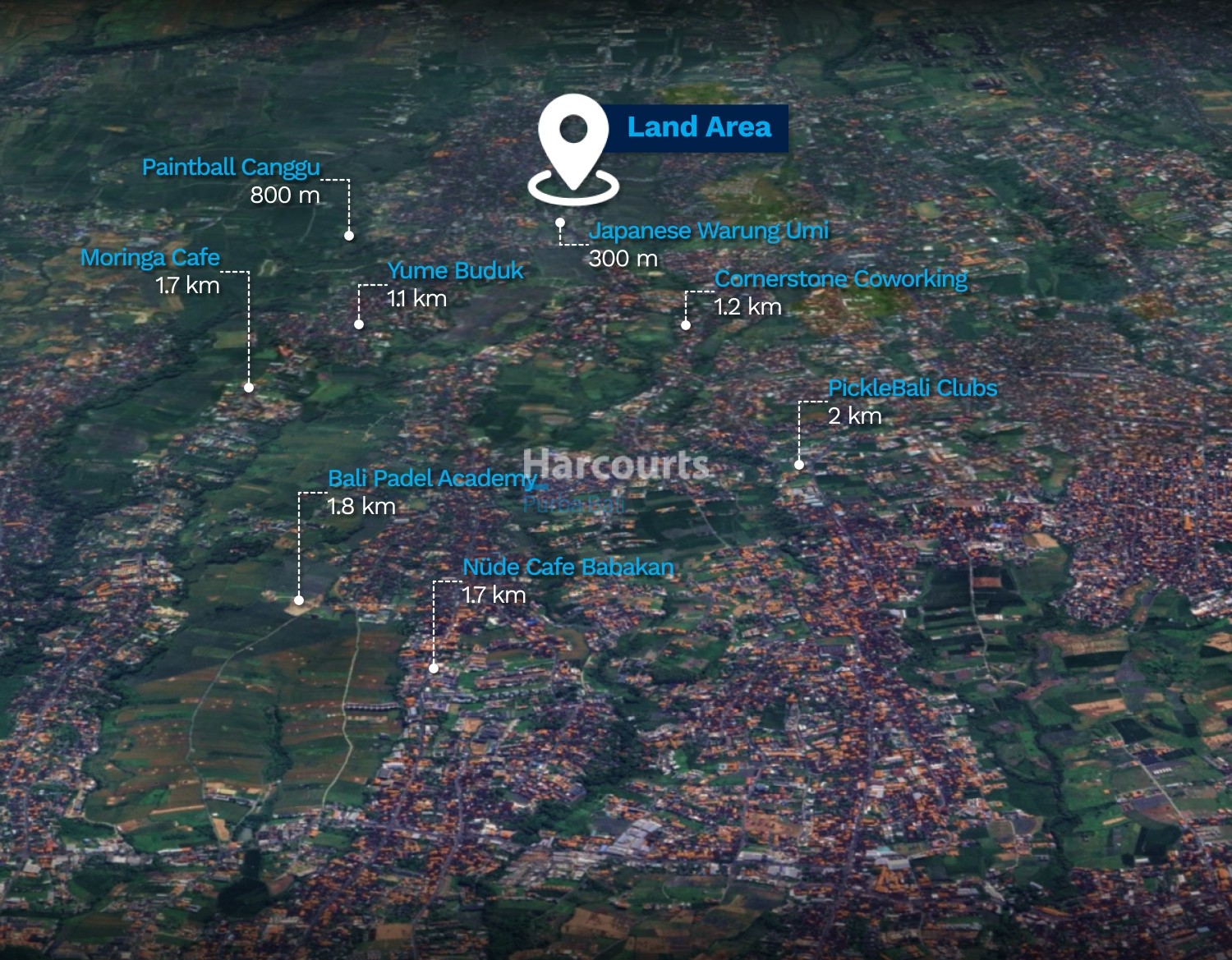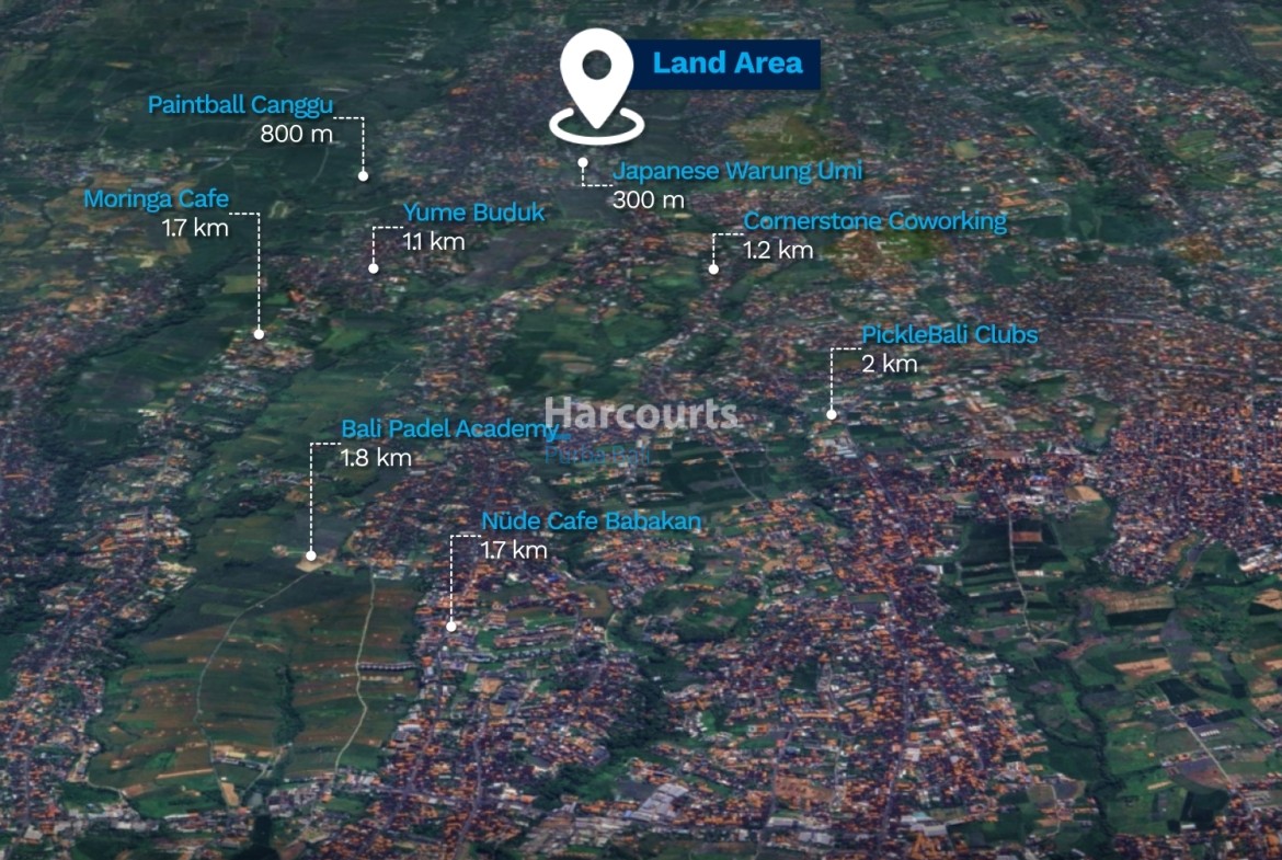 Nearby: Japanese Warung Umi 300 m, Paintball Canggu 800 m, Yume Buduk 1.1 km, Cornerstone Coworking 1.2 km, Moringa Cafe 1.7 km, PickleBali Clubs 2km, Bali Padel Academy 2.7 km, Nüde Cafe Babakan 2.8 km