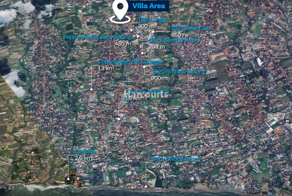 Nearby: Tygr Canggu 300 m, Pepito Market Batu Bolong 450 m, Bali Social Club 650 m, Black Sand Brewery 700 m, TOPGYM Batu Bolong 900 m, Copenhagen Cafe Canggu 1.3 km, Deus Ex Machina 1.6 km, Batu Bolong Beach 2.5 km, La Brisa 2.6 km