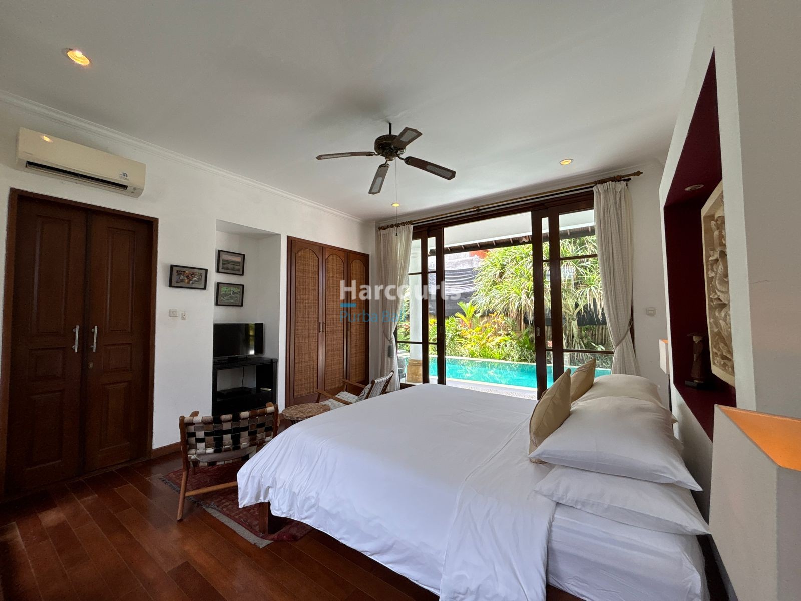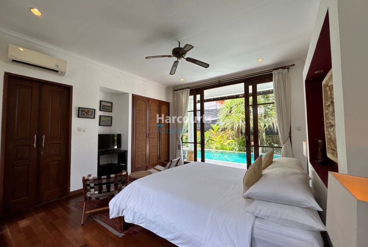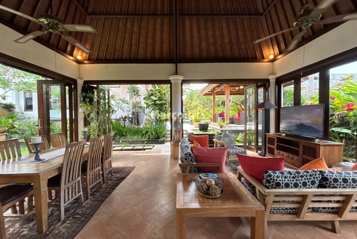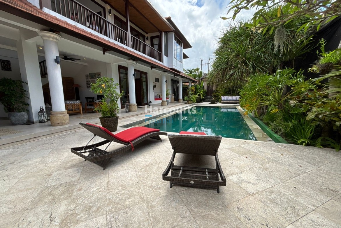 Set in desirable Cemagi, this fully furnished four-bedroom, four-bathroom villa is offered Freehold (Hak Milik) and anchored by a private rectangular swimming pool — a timeless Balinese contemporary residence built circa 2009 and ready for immediate occupancy. The two-level layout combines generous living proportions with considered planning across approximately 750 m² of built space.