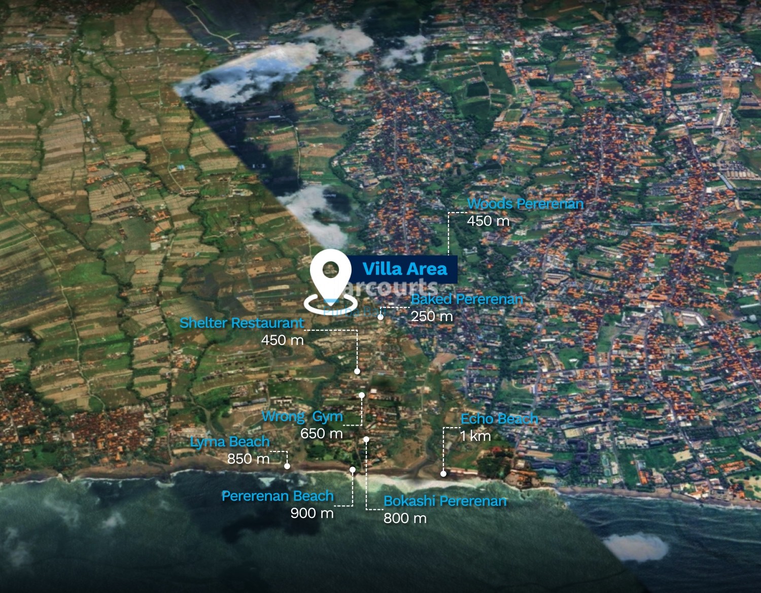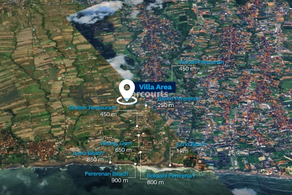Nearby: Baked Pererenan 250 m, Shelter Restaurant 450 m, Woods Pererenan 450 m, Wrong Gym 650 m, Bokashi Pererenan 800 m, Lyma Beach 850 m, Pererenan Beach 900 m, Echo Beach 1 km