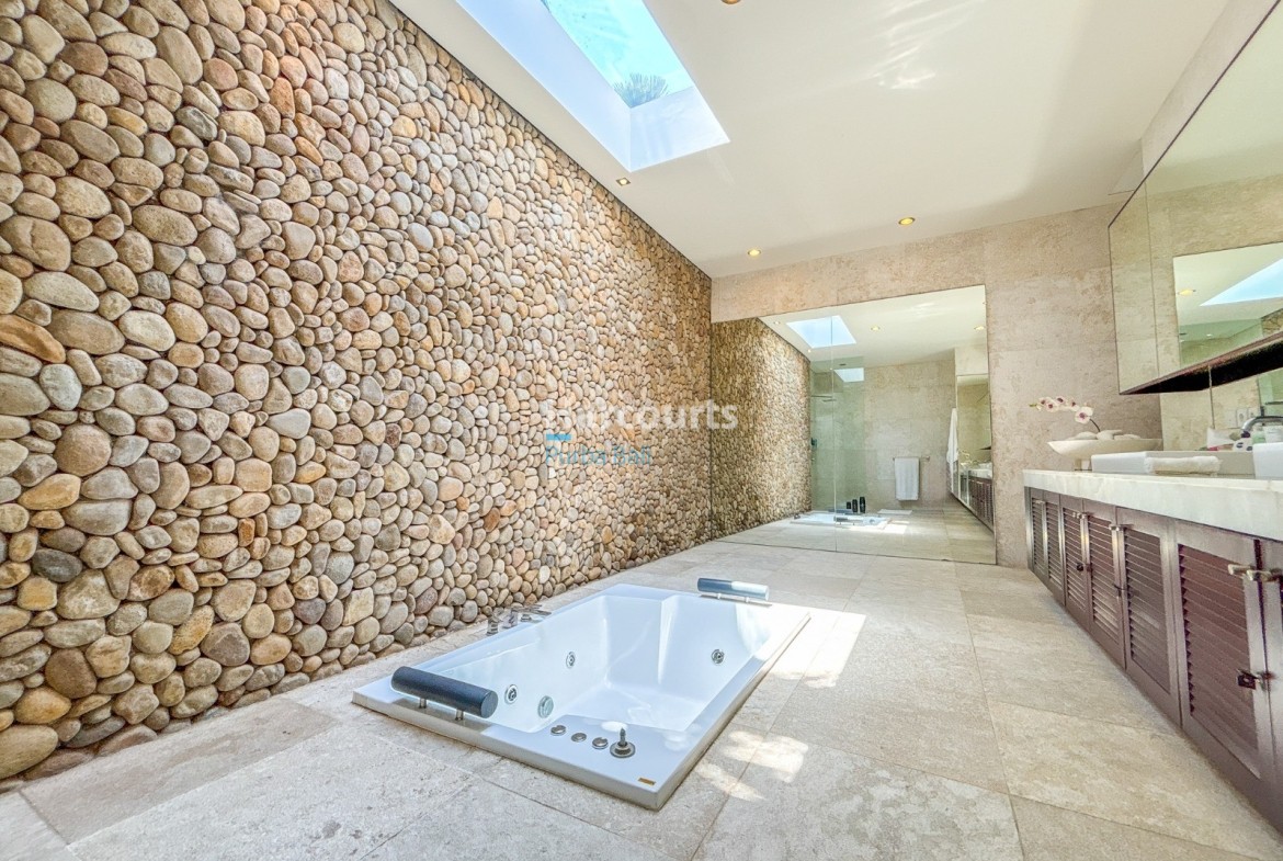 A sleek and modern western-styled kitchen is joined under the main roof by a very accommodating dining area which easily leads to the plush lounge room. The heart of the home, with gorgeous acid washed marble flooring, is just steps away from the beautiful Indian slate tiled swimming pool. A mature garden creates the impression that the villa has been there forever, even though it was only built in 2012.