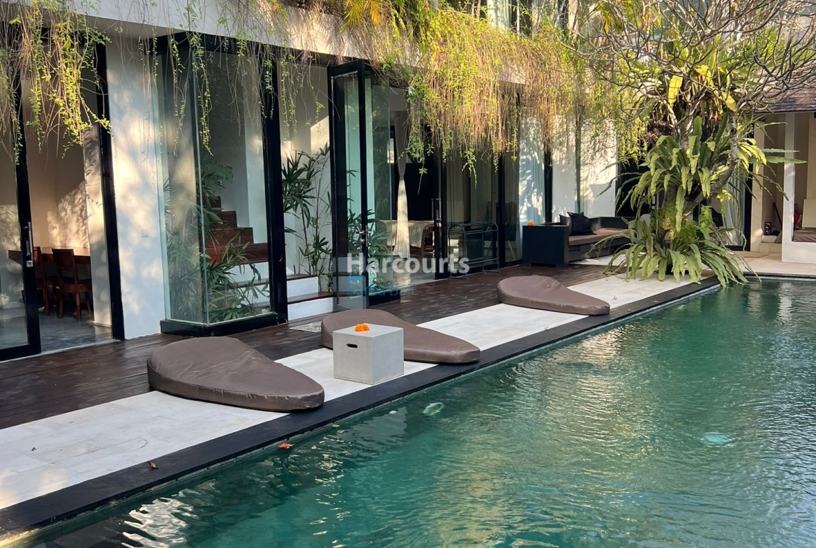 Just steps away from Berawa’s famous beach clubs and cafes, this striking contemporary villa in Pantai Kayu Putih offers the perfect balance of investment value and comfortable living. Set across a generous 650 sqm land with 453 sqm of living space, the two-storey property is designed with open living areas, lush greenery, and a spacious rectangular pool that instantly sets the tone for a relaxed Bali lifestyle.