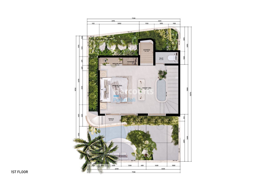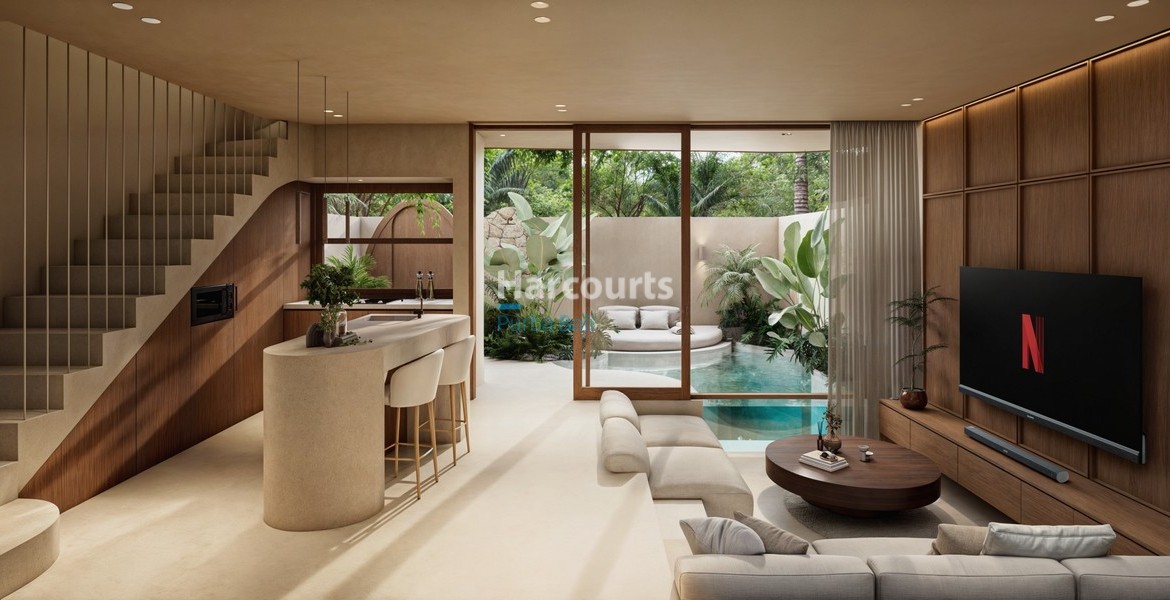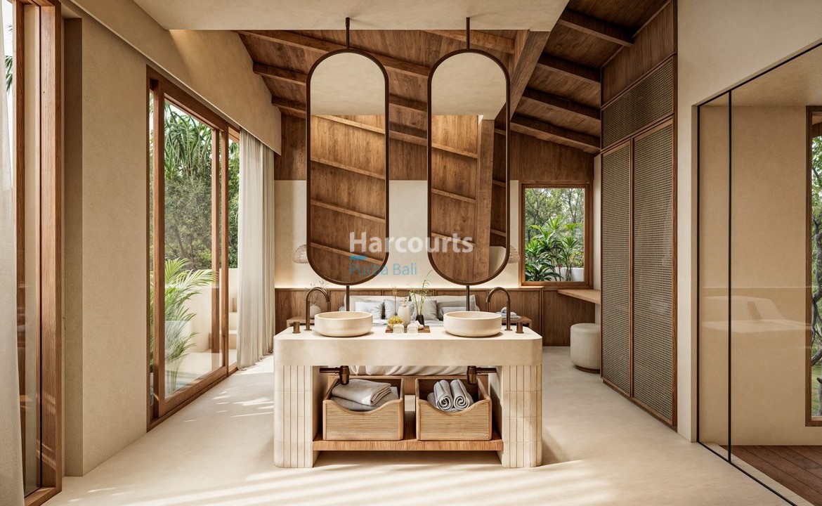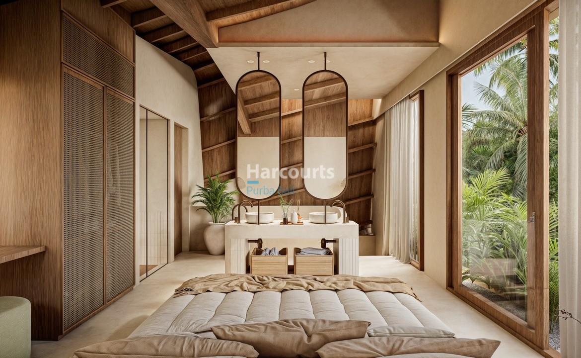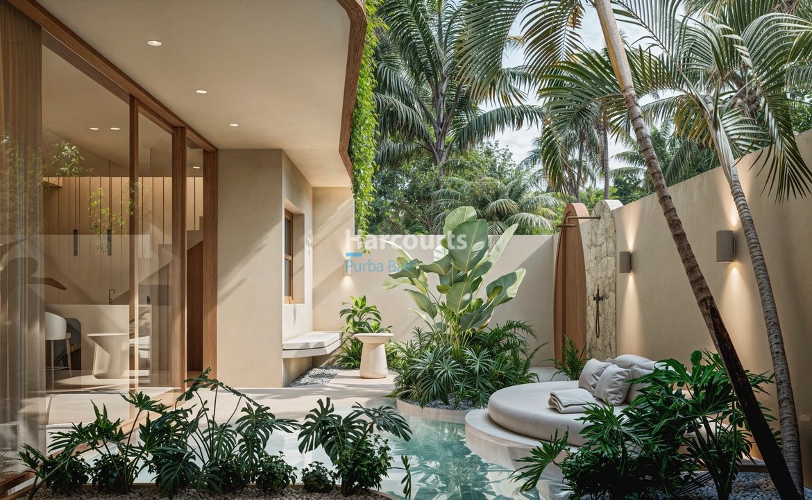 Set on a quiet hillside in Pecatu, this contemporary one-bedroom villa on Leasehold (Hak Sewa) — 25 years remaining presents a sophisticated turn-key investment with a standout aquarium-style window that visually links the sunken living room to the private pool. Scheduled for completion in 2026 and delivered fully furnished, the project includes a guaranteed 25-year extension option, securing long-term ownership flexibility in one of Bali’s most sought-after enclaves.