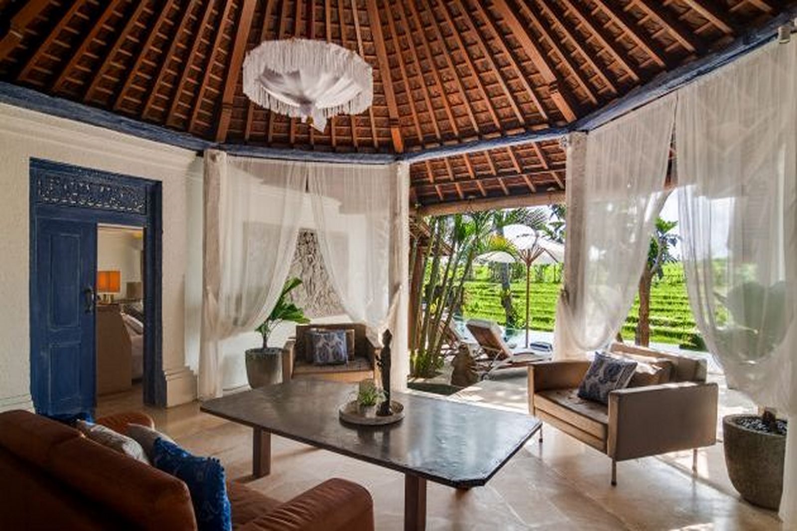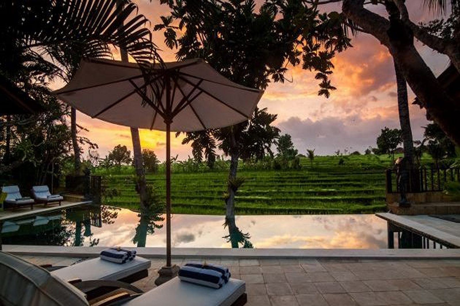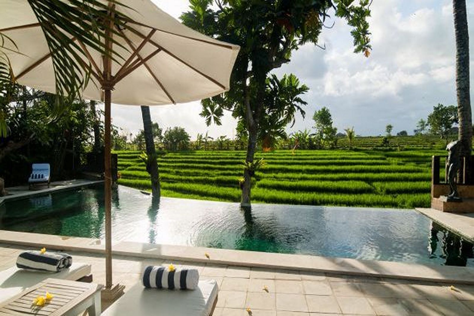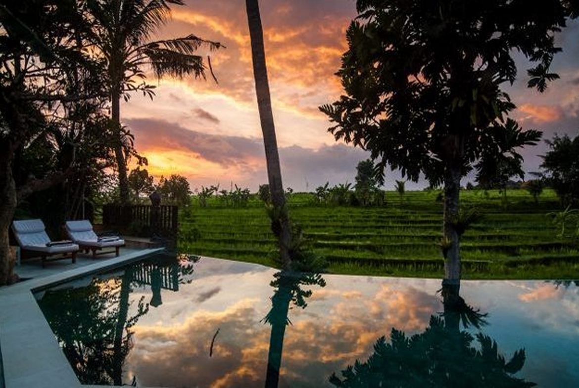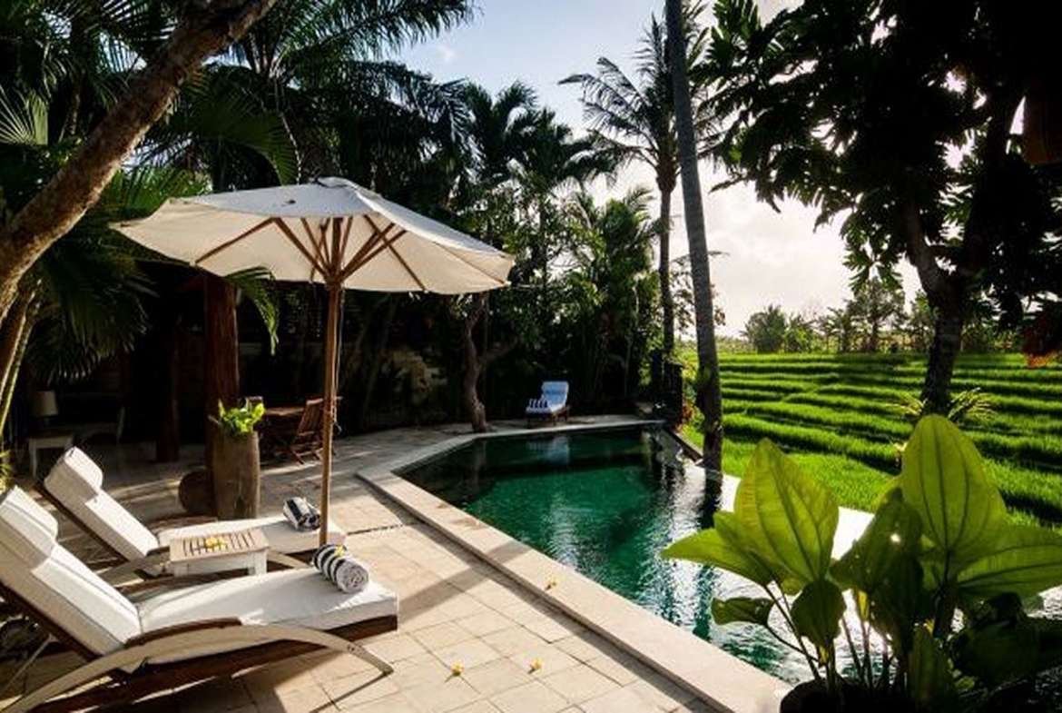 Available on a FREEHOLD basis, this delightful, fullyfurnished, single-storey villa is characterised by an openconcept living room overlooking a12m pool against a backdrop of rice terraces. Antique timber posts, beams and Balinese doors create a rustic touch. Each of the 3 air-conditioned bedrooms has a TV, a peaceful rice field & mountain view, and an ensuite bathroom. The kitchen is fully-equipped, while the bale relaxation pavilion
