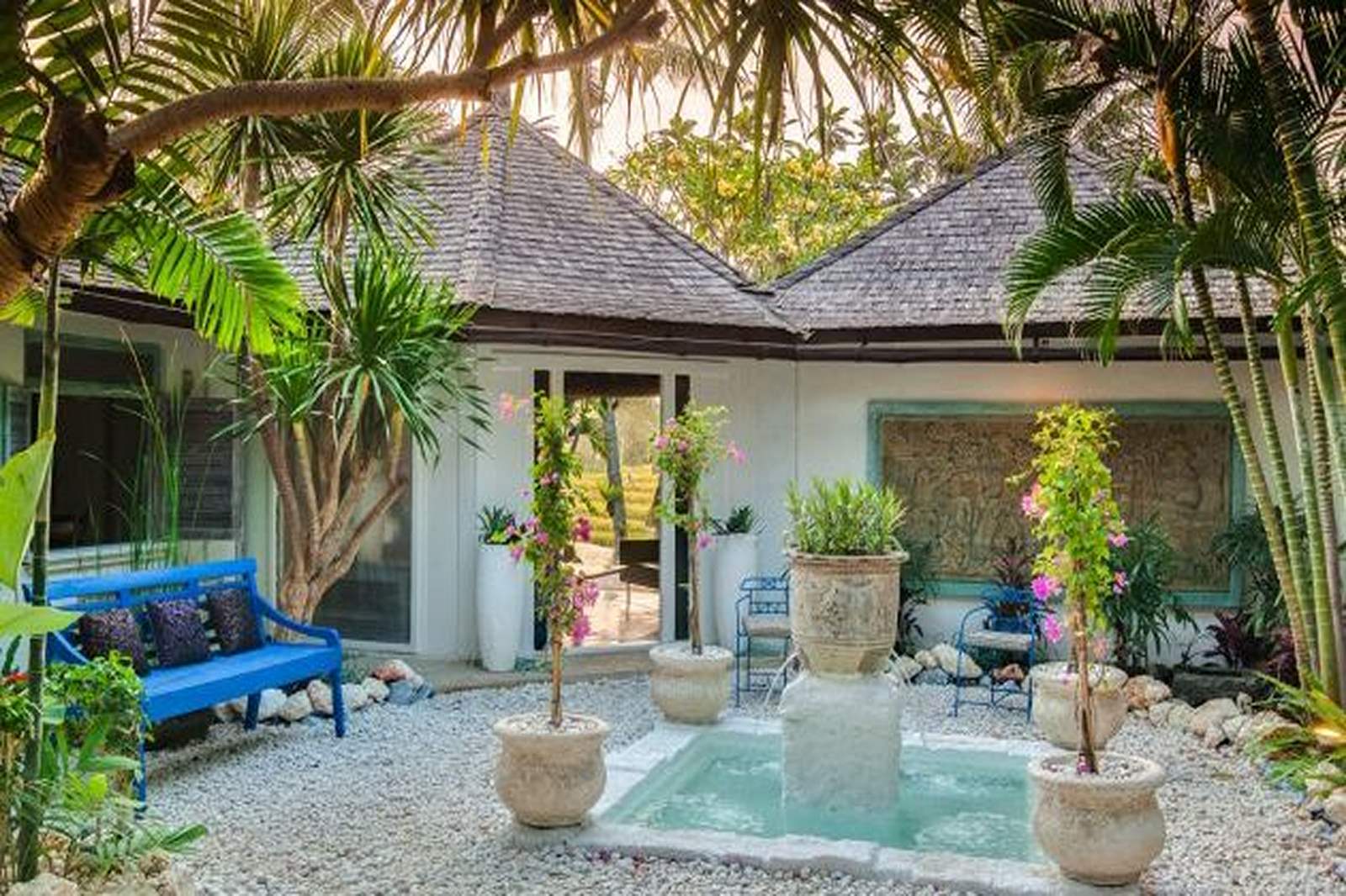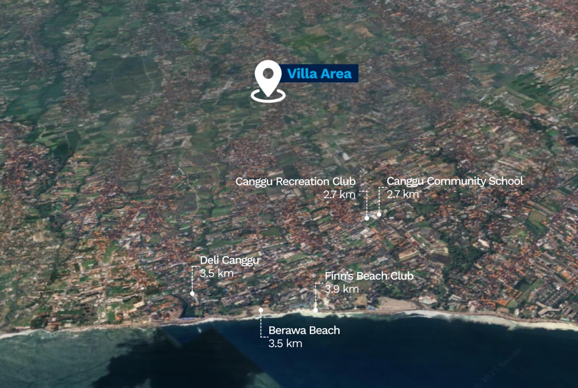 Sits within a gorgeous garden designed by Bali’s leading landscape architect John Pettigrew. The villa is situated 3.5km from Brawa Beach, which is popular with surfers, and the lively Finn’s Beach Club, and 40 minutes drive from Bali’s international airport. It is close to all the popular restaurants in the area, as well as the Canggu Deli & the international Canggu School and Finns Recreation Club & Waterpark. Batu Belig Beach and Seminyak are a short drive in one direction and the famous Echo Beach the other direction.
