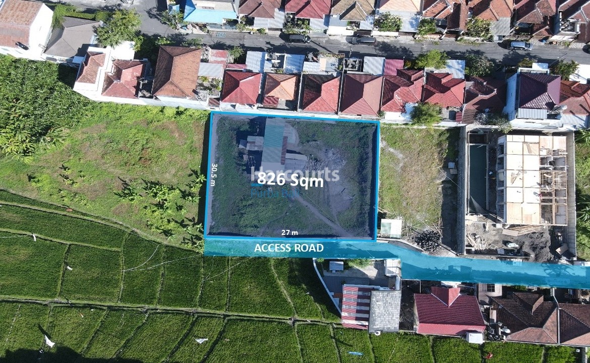 The land is zoned for residential use, with a generous 25-year lease (until 2050) and an option to extend, making it a secure investment for the future. Measuring approximately 27 x 30.5 meters, the plot enjoys easy access via a 3-meter private track, surrounded by other villas and houses, ensuring a serene and exclusive setting. On-site water and electricity add convenience, while the stunning rice field views create a peaceful backdrop for any development.