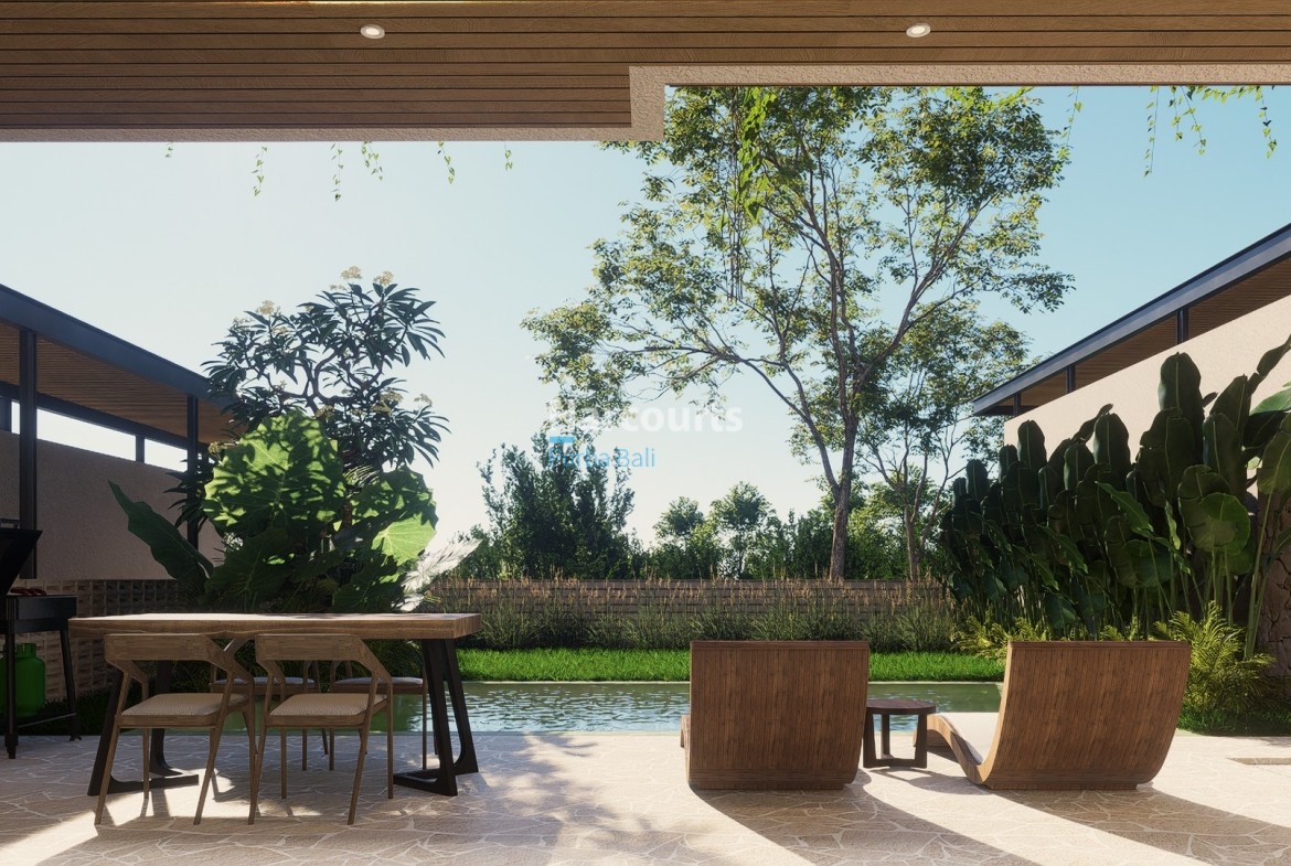 Set in the sought-after coastal enclave of Ungasan, this off-plan tropical contemporary villa merges modern design with the beauty of its natural surroundings. Designed with sustainability in mind, the villa embraces an open-plan concept that allows for seamless indoor-outdoor living. Existing trees are preserved to enhance the lush garden atmosphere, while a green fence replaces traditional barriers, maintaining a harmonious connection with nature.