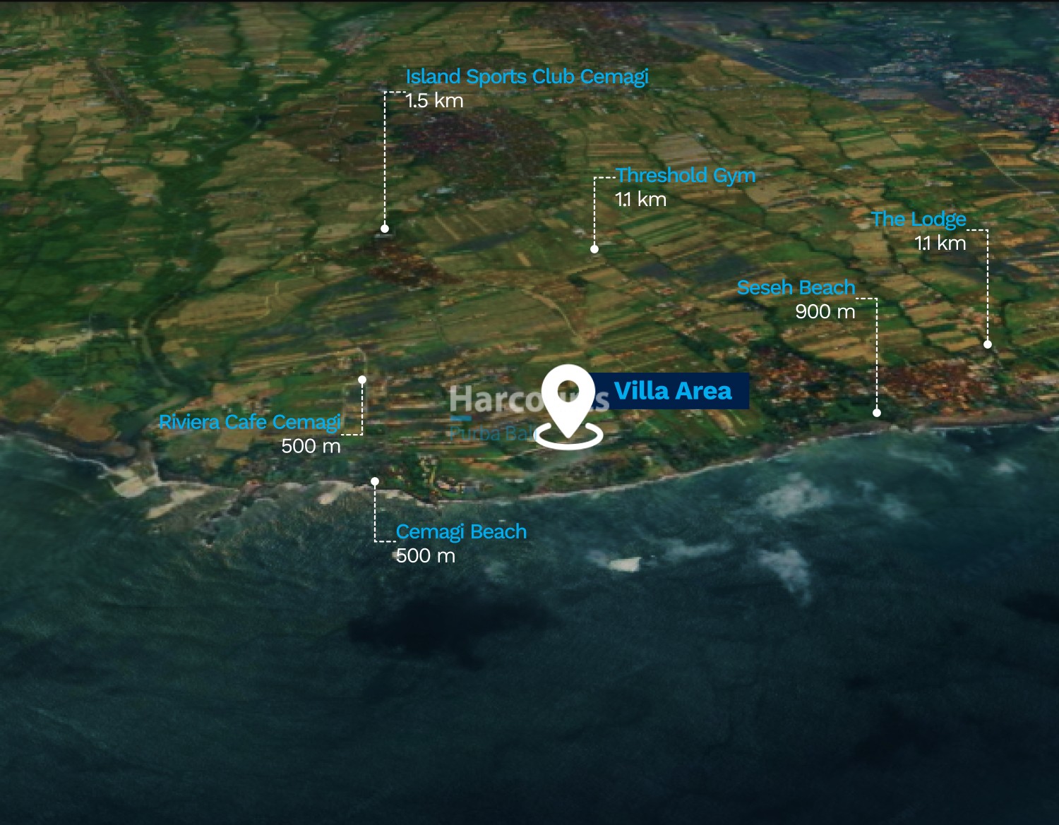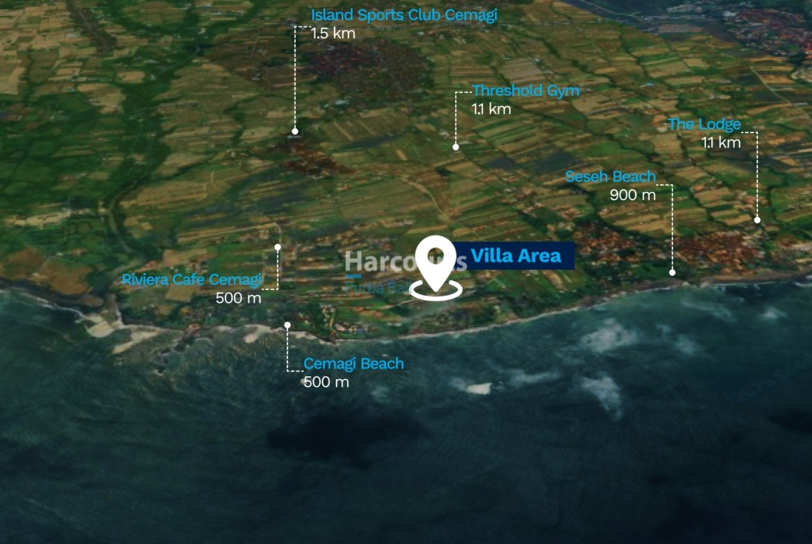 Nearby: Cemagi Beach 500 m, Riviera Cafe Cemagi 500 m, Seseh Beach 900 m, Threshold Gym 1.1 km, The Lodge 1.1 km, Island Sports Club Cemagi 1.5 km, Pepito Market Buwit 3 km, Copenhagen Bakery Seseh 3 km