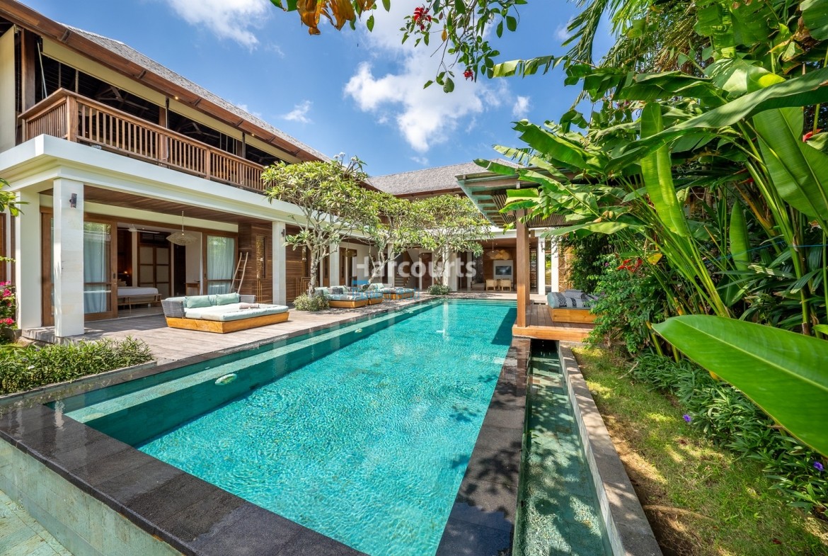 Positioned in one of Bali’s most sought-after coastal enclaves, the villa offers walking access to cafes, restaurants, and the beach, while maintaining complete seclusion once inside the gate. In a market filled with smaller one- and two-bedroom options, a spacious, architect-designed five-bedroom villa of this caliber stands apart as a proven high-yield investment.