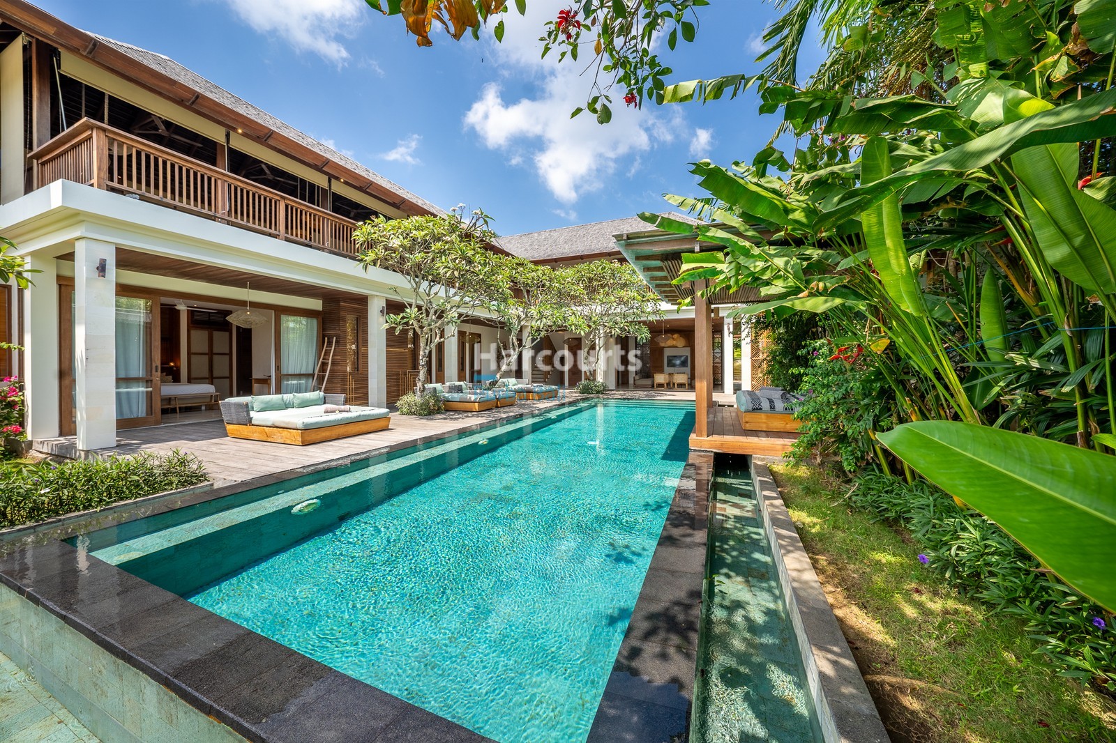 Outdoors, the impressive 12 x 3.5-meter lap pool is flanked by inviting daybeds and a shaded bale, setting the tone for long afternoons spent unwinding. Adding another layer of indulgence, a private spa area on the ground floor elevates the guest experience and further enhances the villa’s reputation as a high-performing holiday rental with exceptional returns.