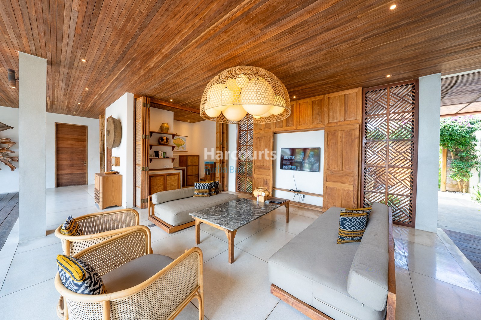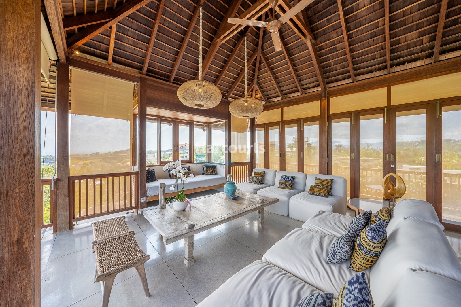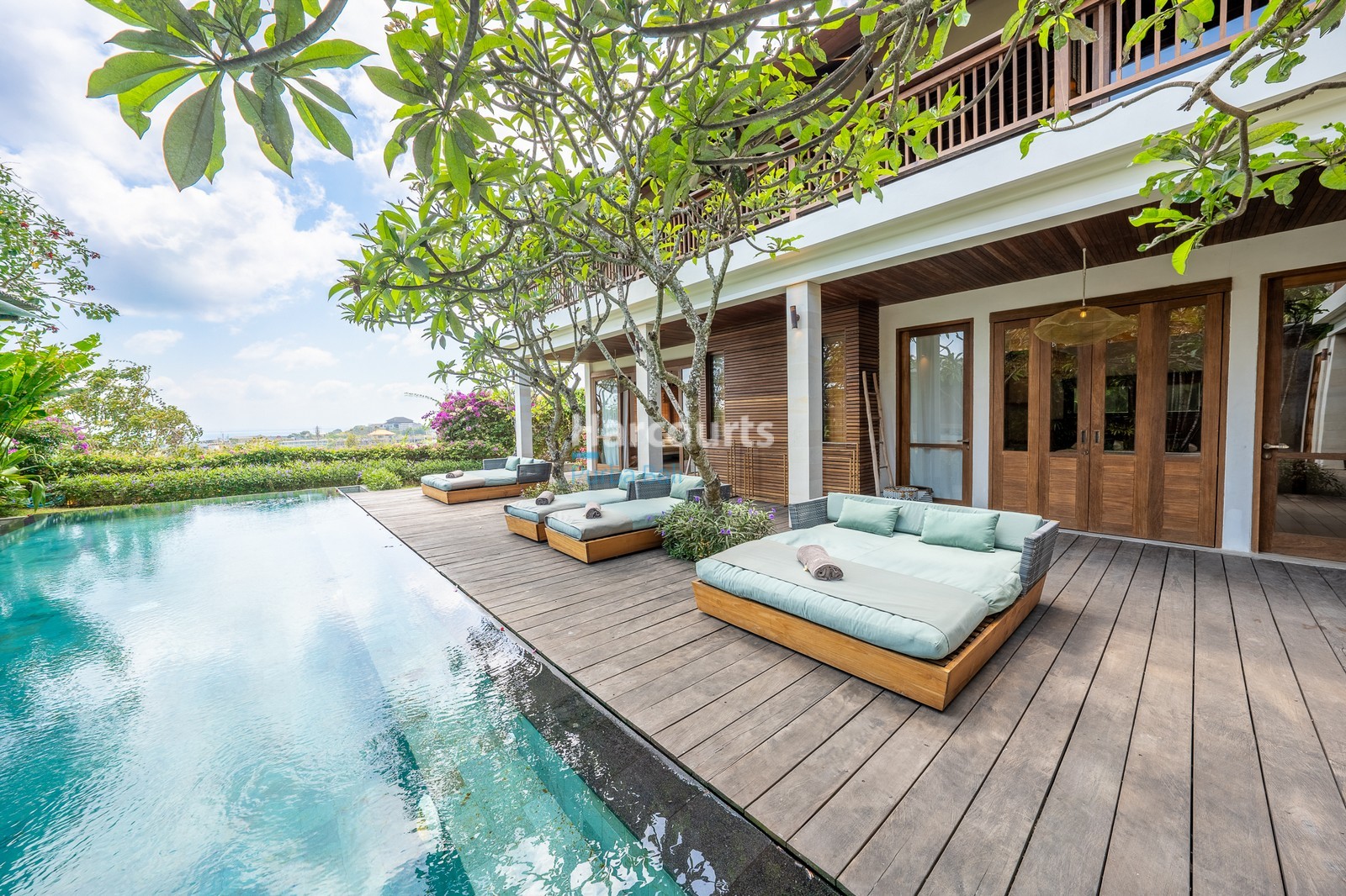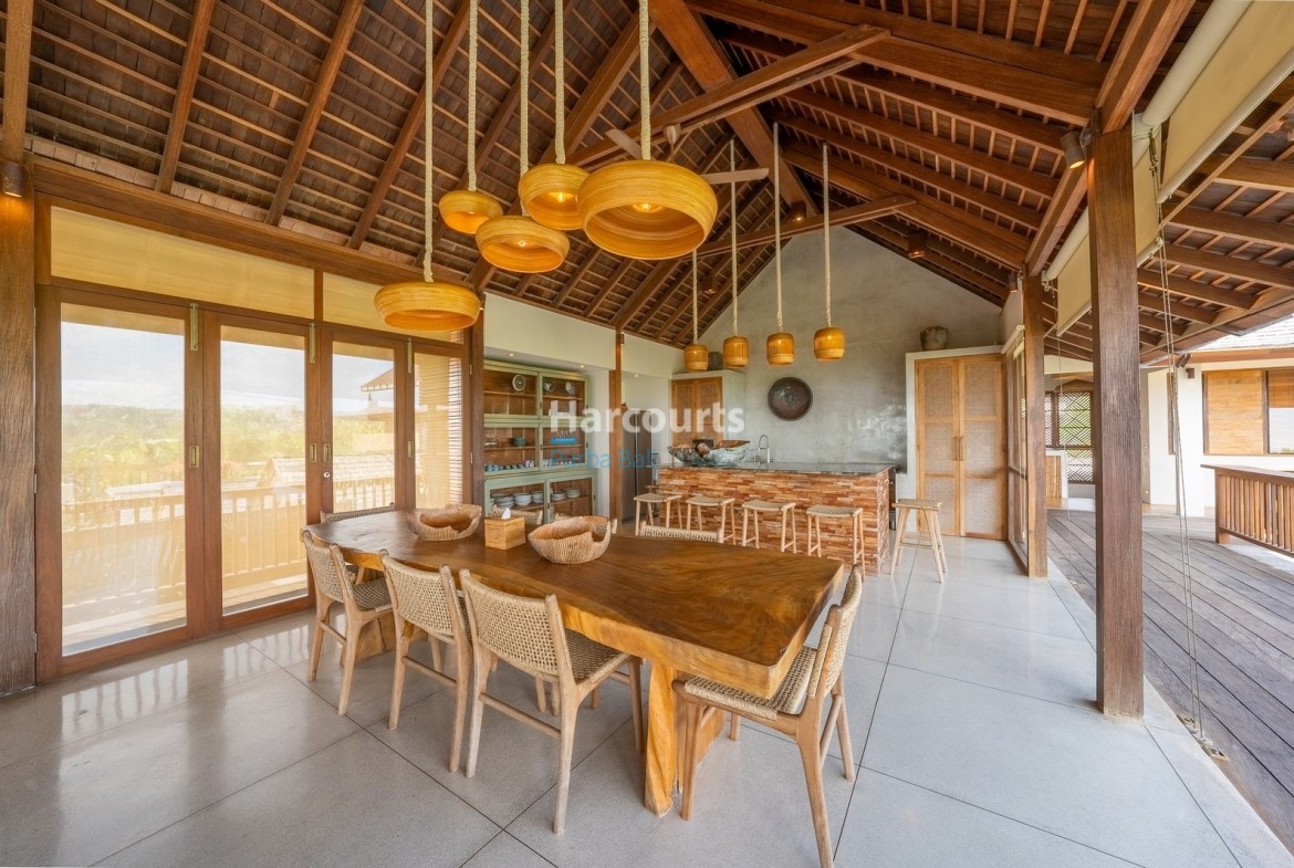The moment you step into this EXCLUSIVE stunning five-bedroom villa in Bingin, you’re greeted by a sense of warmth and welcome. Expansive teak ceilings, rich timber accents, and soft natural light create an atmosphere that feels instantly comforting, while open spaces flow effortlessly toward a striking central pool framed by tropical landscaping. It’s a home designed to be experienced—a place where architectural elegance meets coastal living at its finest.