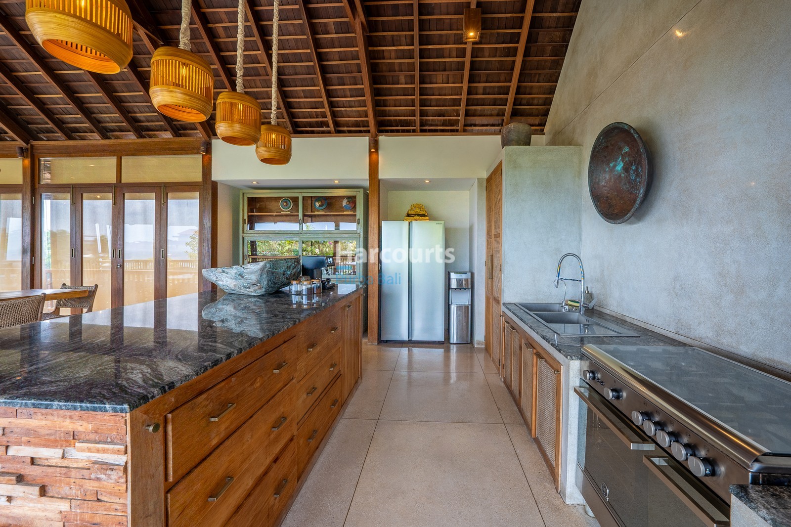 Set on 700 sqm of land with approximately 400 sqm of interior space, the two-level residence maximizes both privacy and openness. The upper lounge captures sweeping ocean views—a highlight for guests and residents alike—while downstairs, the living pavilion combines custom rattan lighting, lattice panels, and Western-standard comforts. The sleek kitchen flows effortlessly into the dining area and out onto the pool deck, perfect for lazy brunches, sunset dinners, and holiday entertaining.