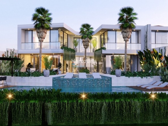 The large enclosed living/dining areas and spacious, fully equipped kitchen with breakfast bar open up to the large swimming pool. The villa also has a media room, staff quarters and a big parking area.