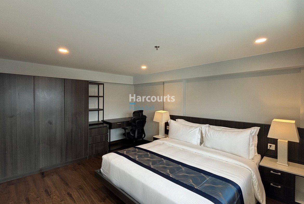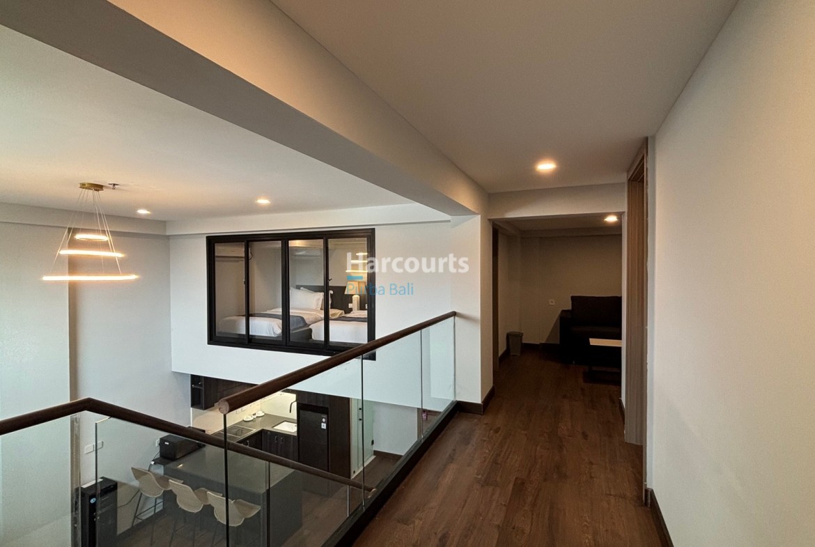 Located within a 4-storey building developed under tourism zoning (Pariwisata), this fully managed and operational complex is currently run as both a hotel and long-term residence. Residents and guests enjoy a range of upscale shared amenities including a stylish lobby and reception, a rooftop bar and restaurant, a shared rectangular rooftop swimming pool with sunset views, and a gym—perfect for lifestyle-focused renters and travelers. Underground parking is also available for added convenience.