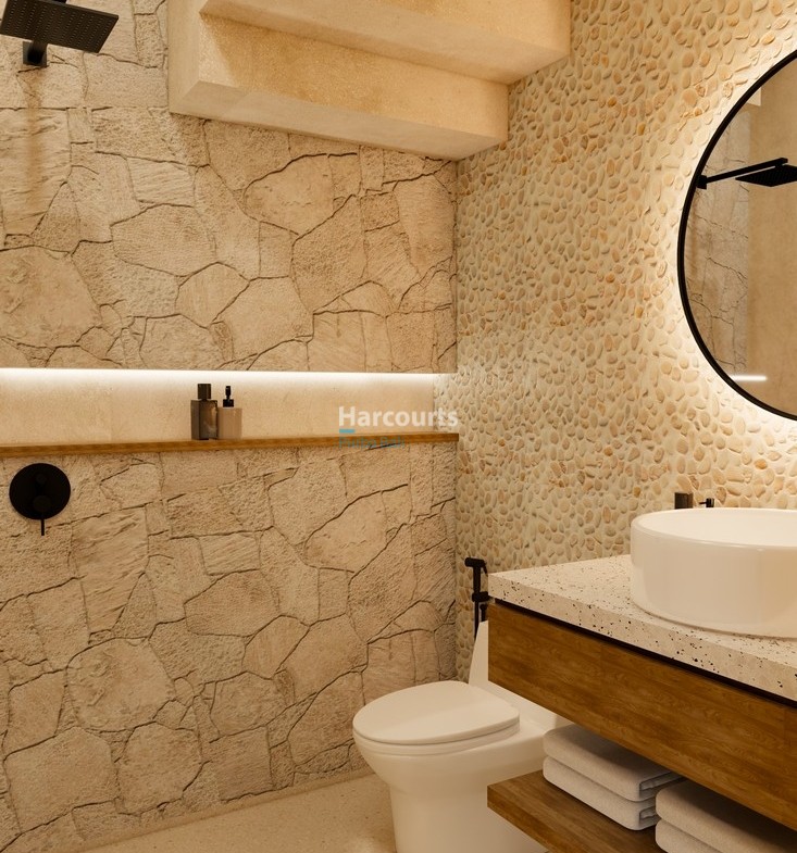 Each villa is thoughtfully designed with an open-plan living area that seamlessly connects to a private swimming pool, creating the perfect space for relaxation and entertaining. Both bedrooms are positioned on the ground floor, offering pool views and ensuite bathrooms equipped with luxurious bathtubs and rain showers. Upstairs, the rooftop terrace provides a versatile space for dining under the stars or enjoying panoramic sunset views.
