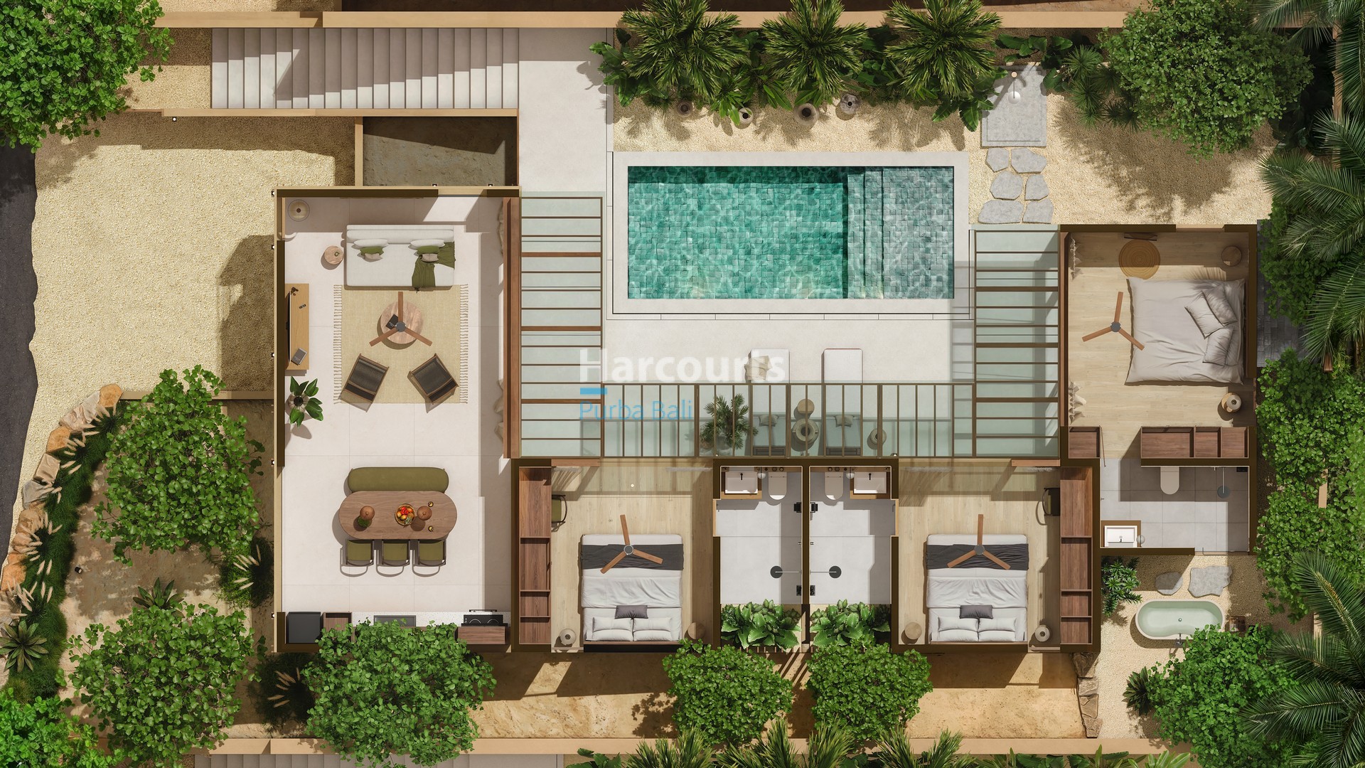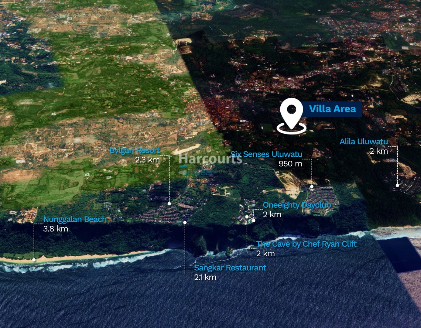 Nestled on a gentle forested limestone slope in Pecatu, Badung Regency, within 10minute drive from Bingin and Padang‑Padang, these three Villas sit inside a yellow‑zoned (low‑density) residential enclave with a dedicated north access road and a secure 30 + 30‑year land lease already in place .