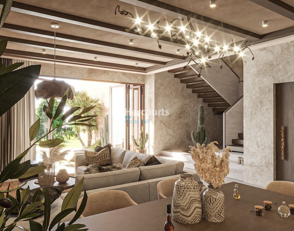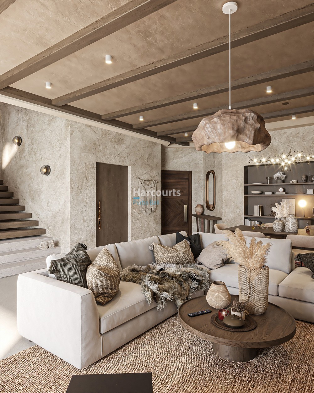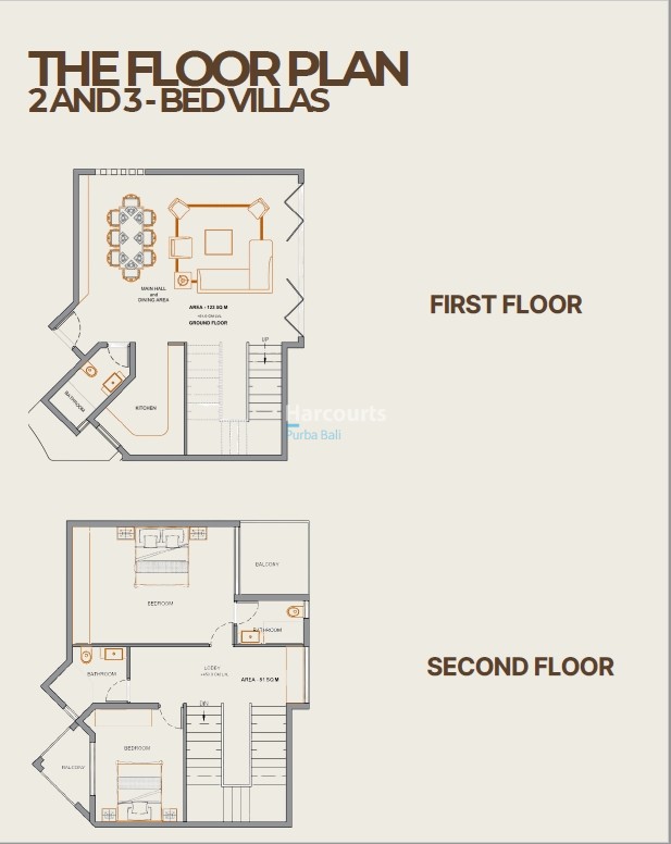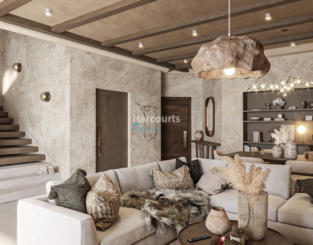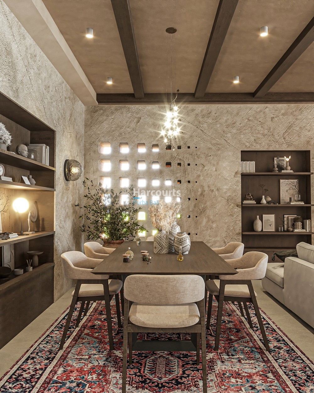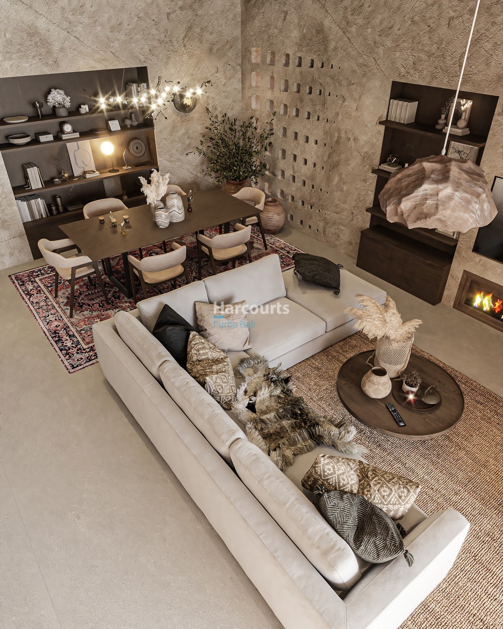 While the complex’s exterior pays homage to the rich, textured style of Jordan’s architectural legacy, each villa takes on a lighter, more contemporary expression. Think floor-to-ceiling glass walls, expansive sliding doors, and clean lines that connect indoor comfort with Bali’s tropical outdoors. Set on 220 sqm of land, the 183 sqm two-storey villa includes three bathrooms, a fully equipped enclosed kitchen, and an open yet private enclosed living and dining space. Fully furnished and finished to high standards, it features modern bathroom amenities including a bathtub and power shower, along with a sleek rectangular private pool—all designed for effortless indoor-outdoor living.