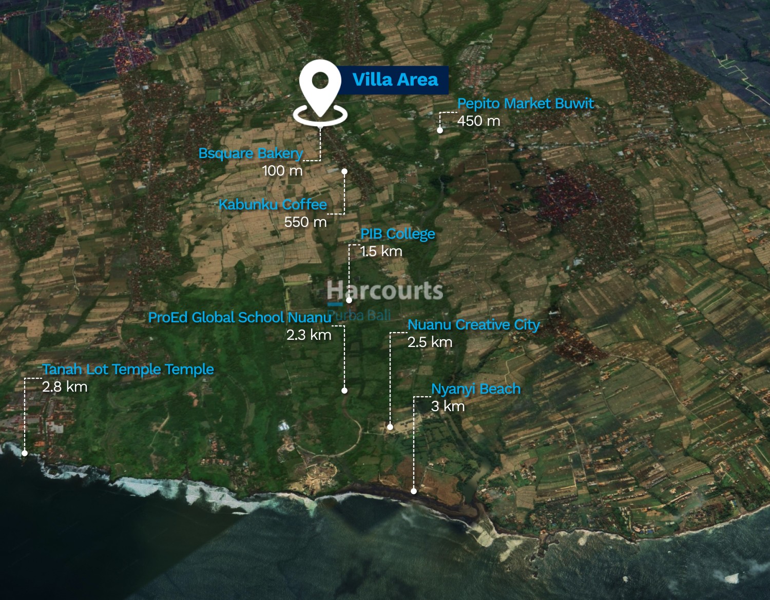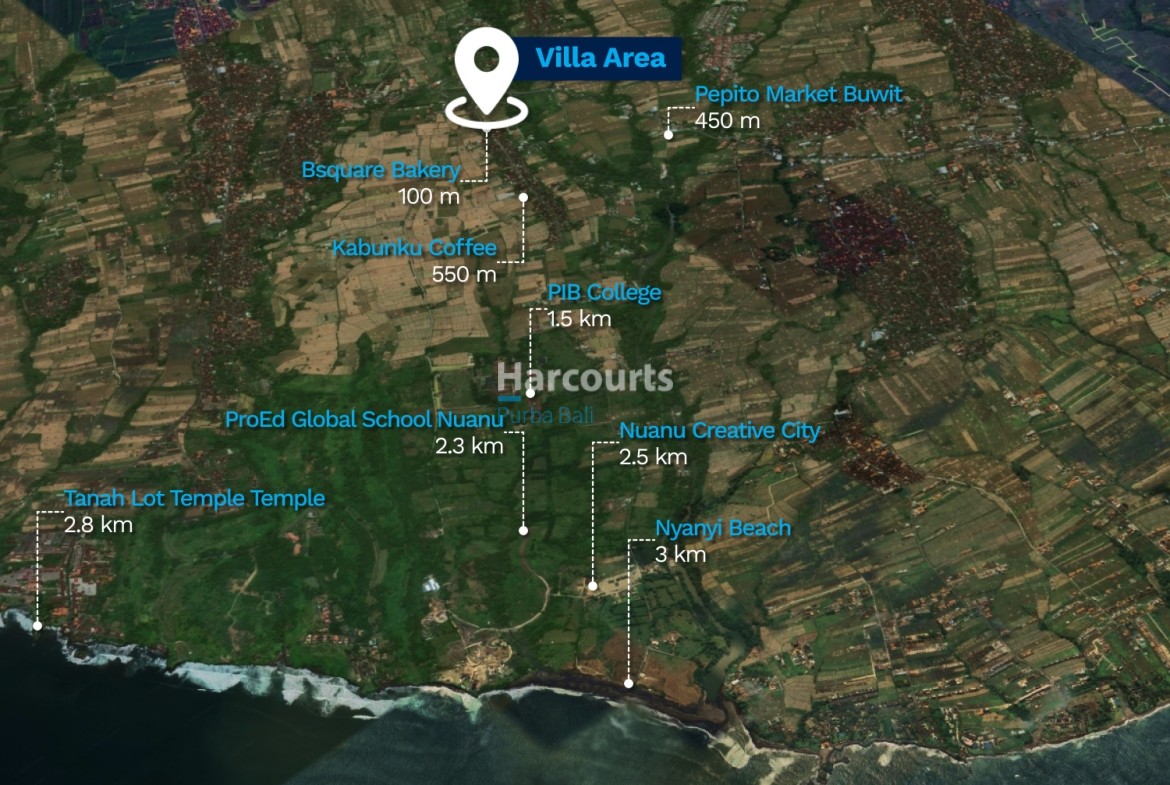 Nearby: Bsquare Bakery 100 m, Kabunku Coffee 550 m, Pepito Market Buwit 800 m, PIB College 1.5 km, ProEd Global School Nuanu 2.3 km, Nuanu Creative City 2.5 km, Tanah Lot Temple Temple 2.8 km, Nyanyi Beach 3 km