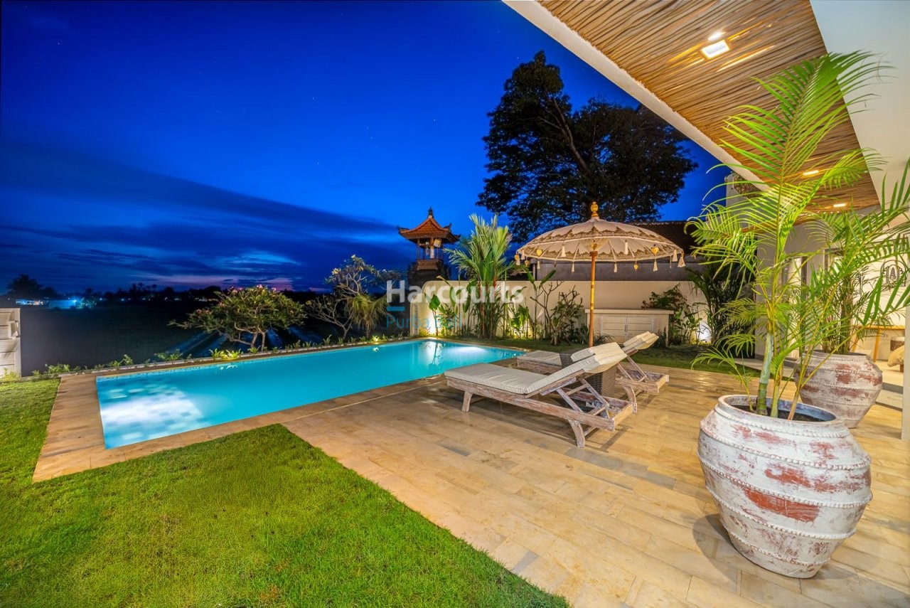 Set in serene Kaba Kaba, this newly completed 2025 villa on Leasehold (Hak Sewa) — 28 years remaining and includes a 30-year extension option — delivers contemporary Balinese living with panoramic rice-field, volcano and ocean glimpses. Presented fully furnished, the two-level residence offers four bedrooms and four bathrooms within a 247 m² build, arranged for effortless daily living and entertaining.