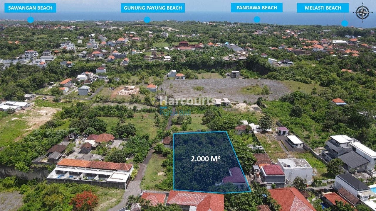 An exceptional freehold opportunity in Kutuh: Freehold (Hak Milik) land of 20 are (2,000 m²) presented as a practical rectangular parcel set back from the main road, offering privacy and a clean canvas for a private estate or bespoke residential project.