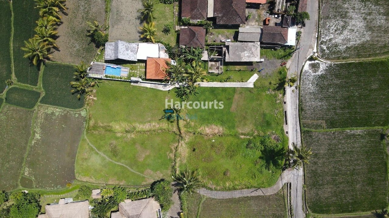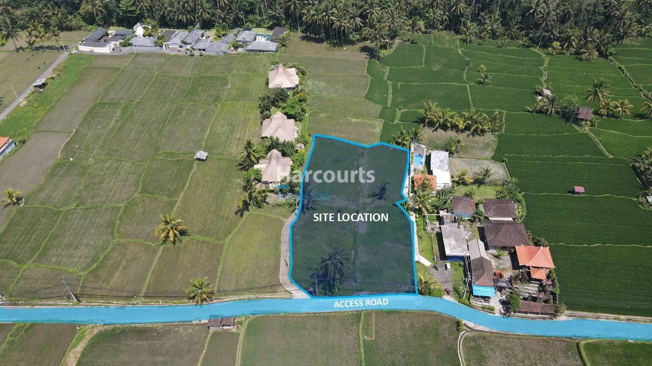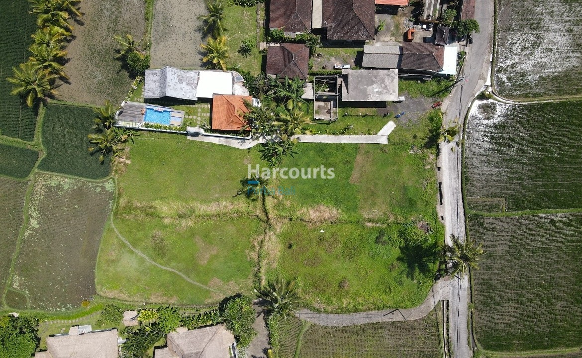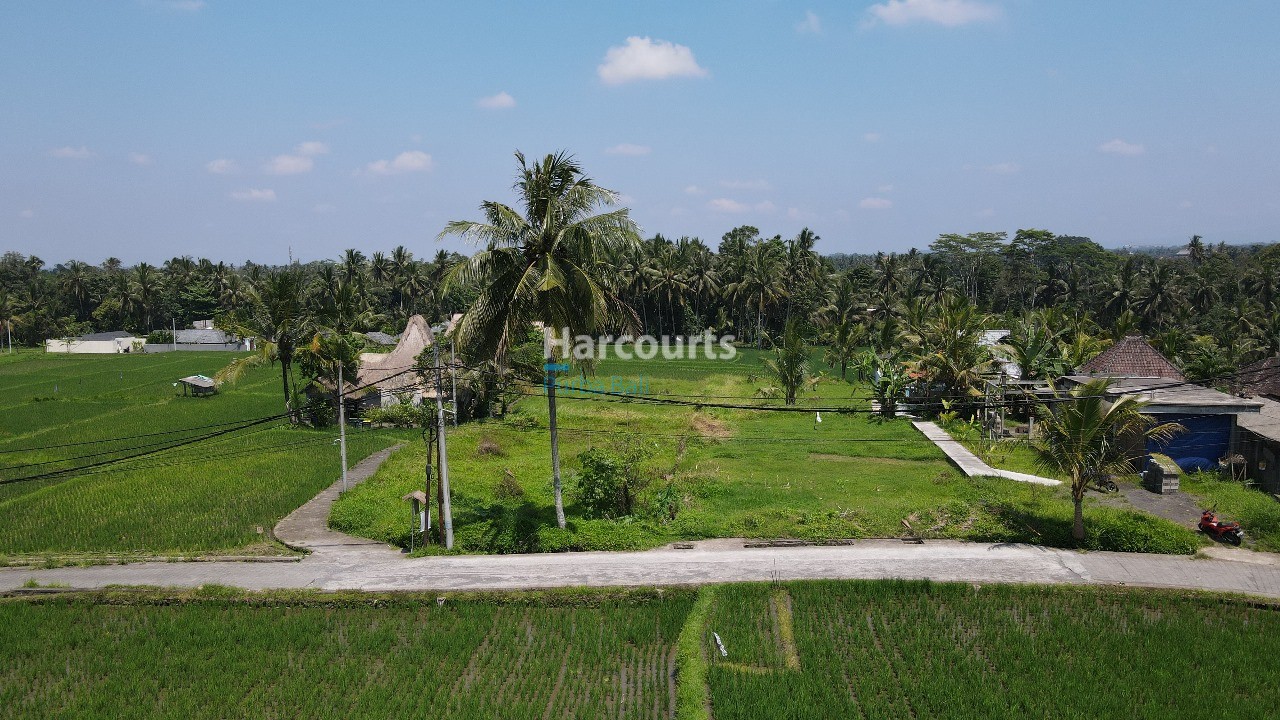 The land is divided into four plots, giving future owners the flexibility to develop a private estate, a boutique villa complex, or a mix of investment and personal use. Its rectangular shape and wide access road frontage make it practical for building, while the yellow zoning ensures development opportunities are straightforward. Framed by rice paddies and coconut groves, the outlook captures everything buyers seek when investing in Bali — nature, space, and a sense of timeless Bali charm.
