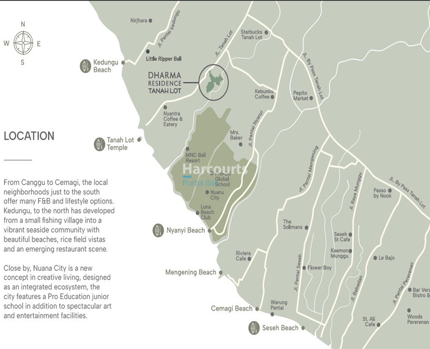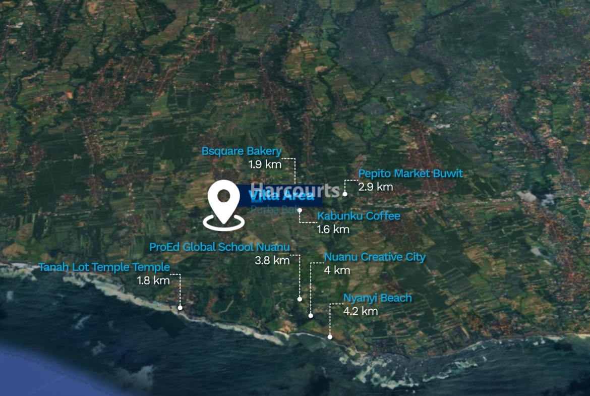 Positioned just 2.2 km from the beach, the estate offers easy access to world-class surf breaks, international schools, cafés, restaurants, and wellness clubs. Its central location ensures strong capital growth and consistent rental demand—ideal for both private living and high-return investment projects. Nuanu is just around the corner, and the redesigned MNC grand hotel and golf course are breaking ground just next door.