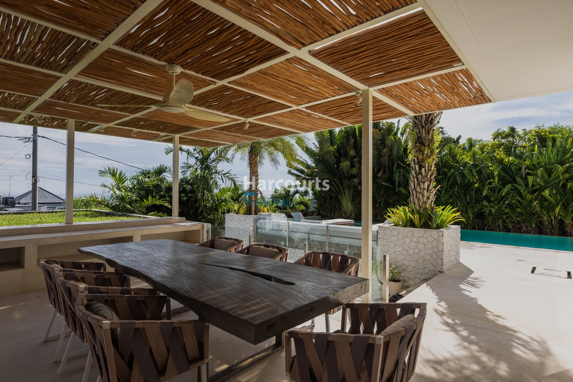 Perched elegantly on Bali’s Bukit Peninsula, this modern four-bedroom luxury villa showcases expansive open-plan living and dining areas that flow seamlessly into breathtaking outdoor entertainment zones — designed for the ultimate island lifestyle.